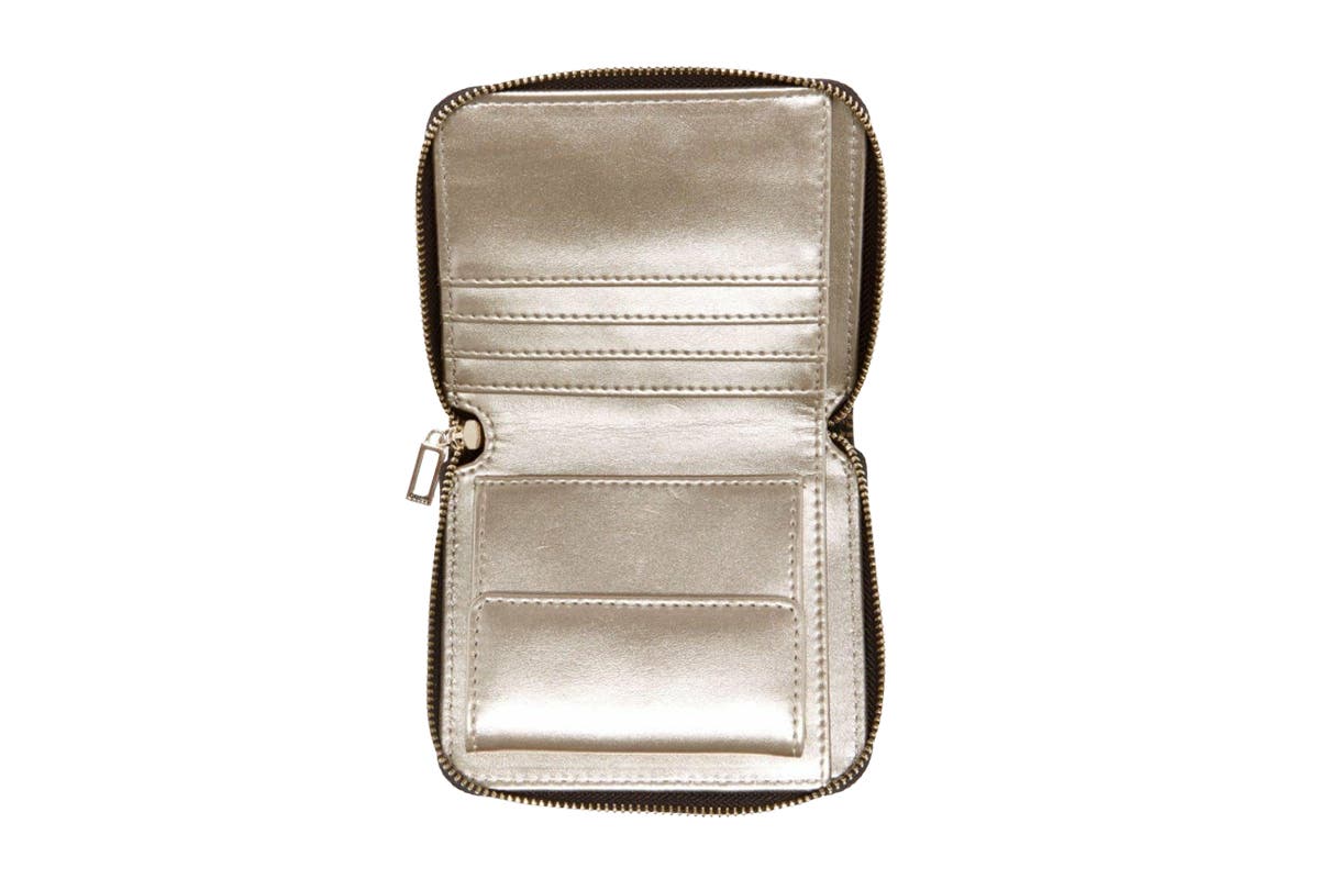 The Guess Noelle Slg Small Zip Around wallet features a logo and peony printed panel adorned by a logo emblem. This wallet is designed in a bifold style with zip-around closure.