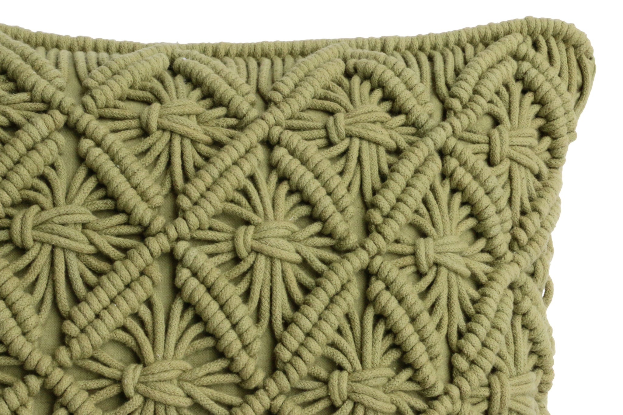 NNEKG Handwoven Cotton Macrame Cushion (45cm x 45cm Olive)