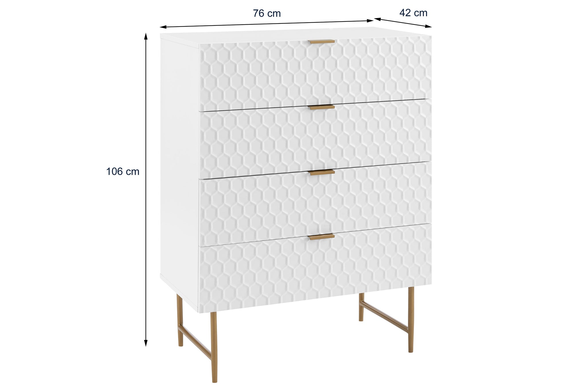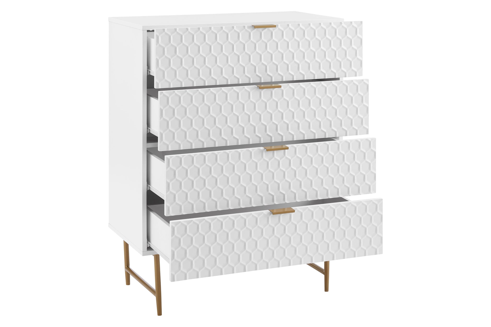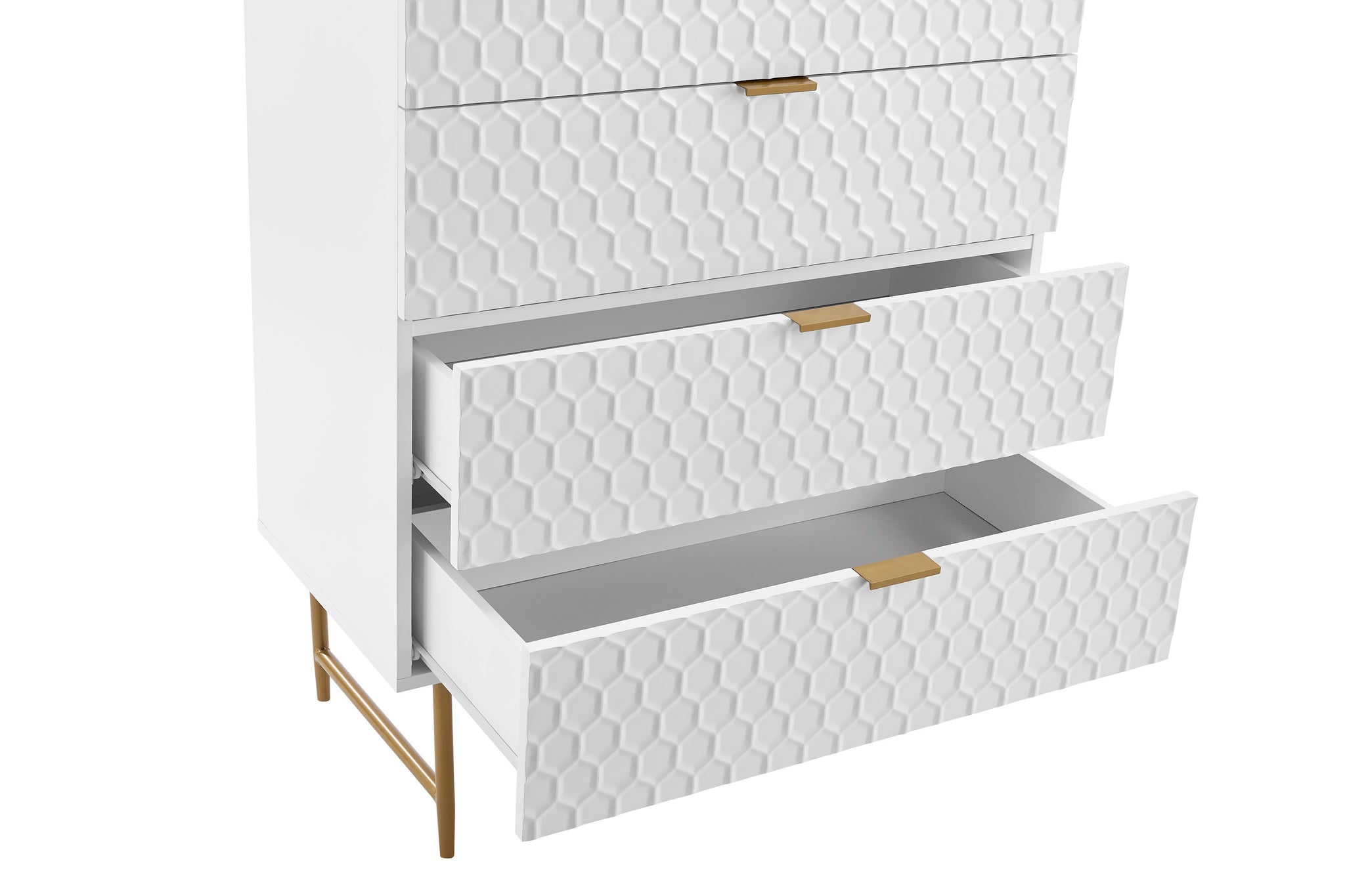 *Please Note: Honeycomb design is not continuous – on drawers, the design on the top drawer does not match up precisely with the design on the bottom drawer