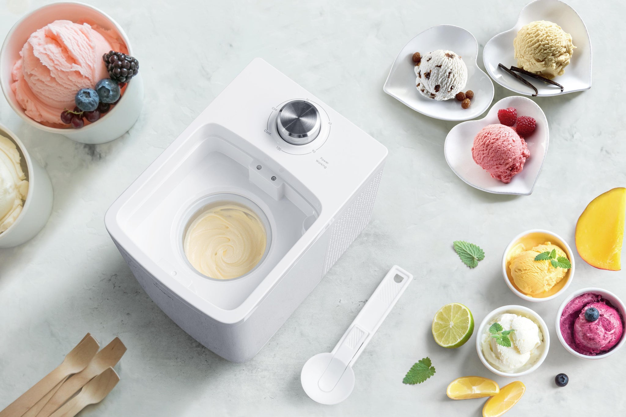 Whether it’s fresh fruit and berries or chocolate chips, nuts and syrup, you can add in whichever fresh ingredients and toppings you desire to create your favourite ice cream, sorbet and frozen yoghurt flavours.