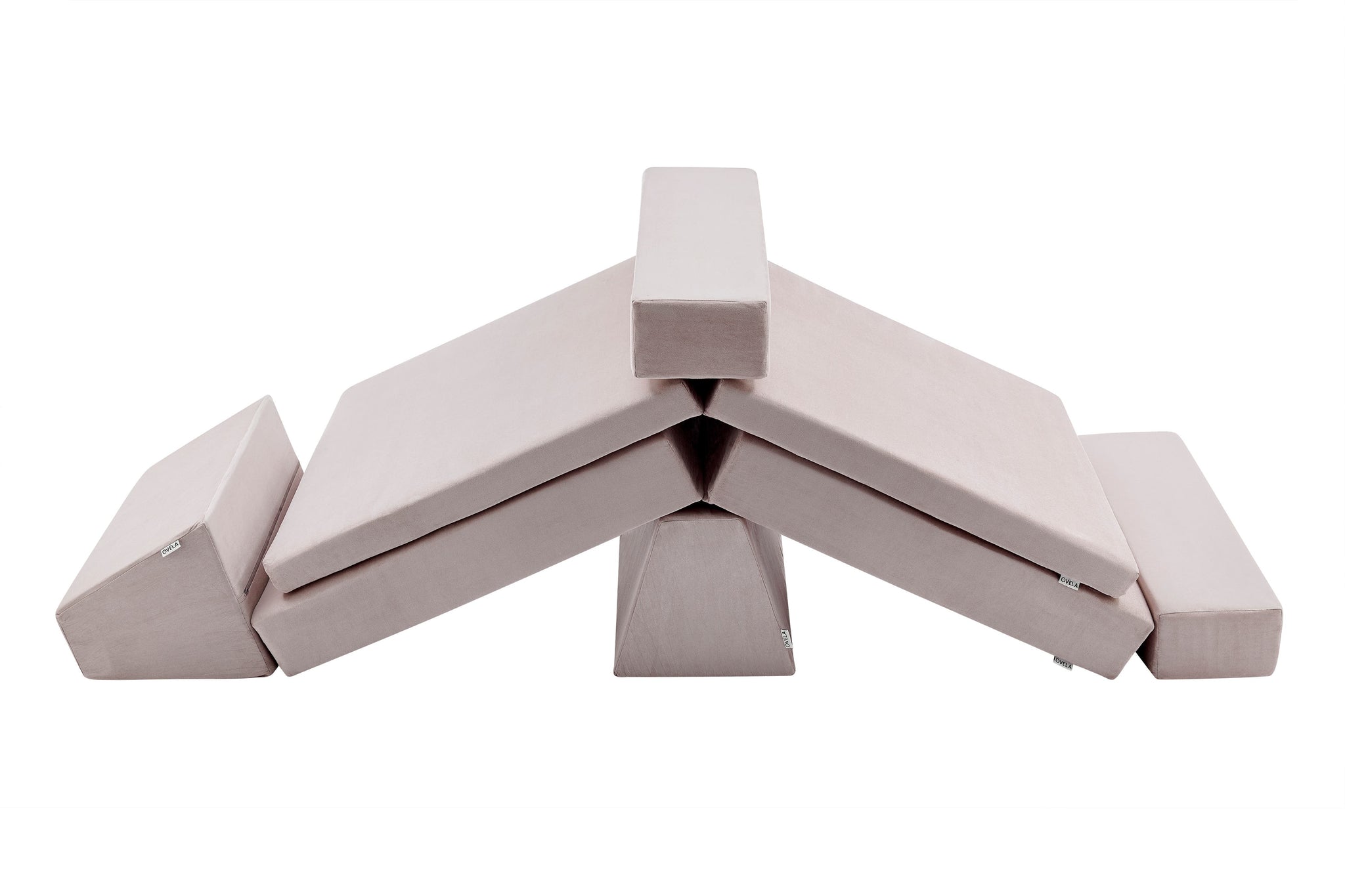With eight detachable foam pieces that can be reassembled into different shaped child’s forts, play areas, or a couch, this kids playcouch offers hours of fun, creativity and imaginative play in any playroom or bedroom.