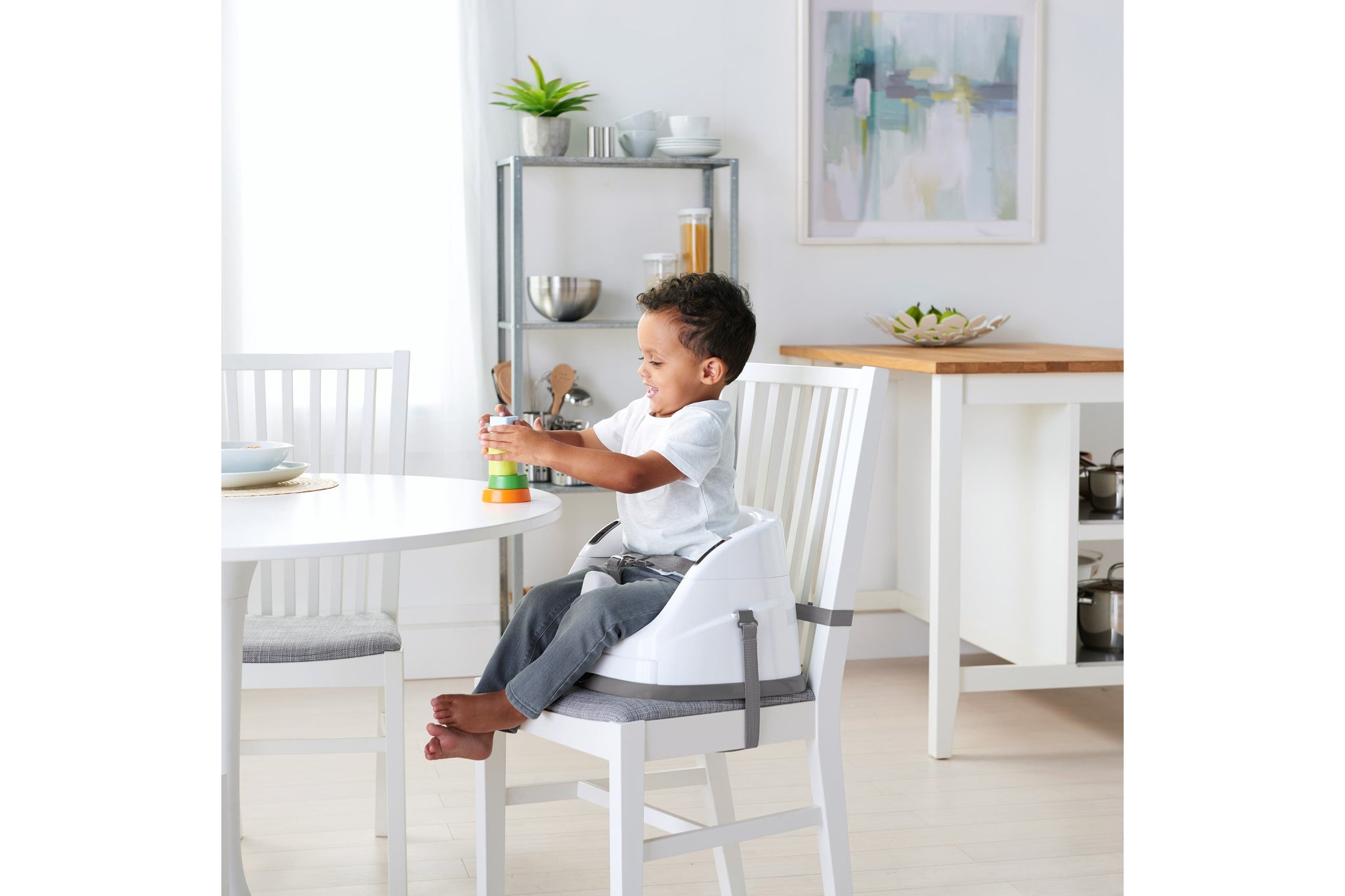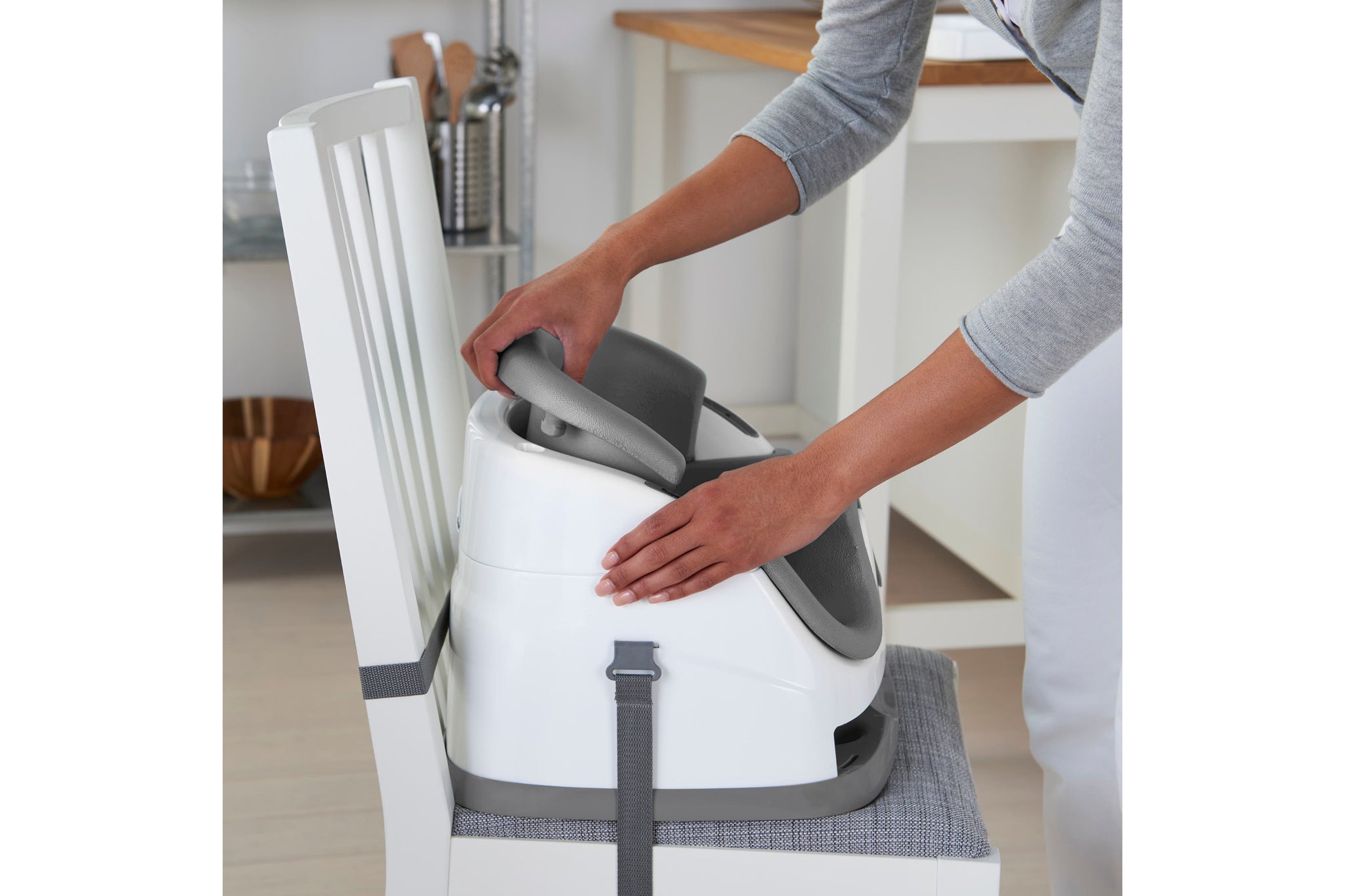 The Ingenuity Baby Base 2-in-1 Booster Seat easily attaches to dining chairs so your baby can sit up higher and see more during family dinners.