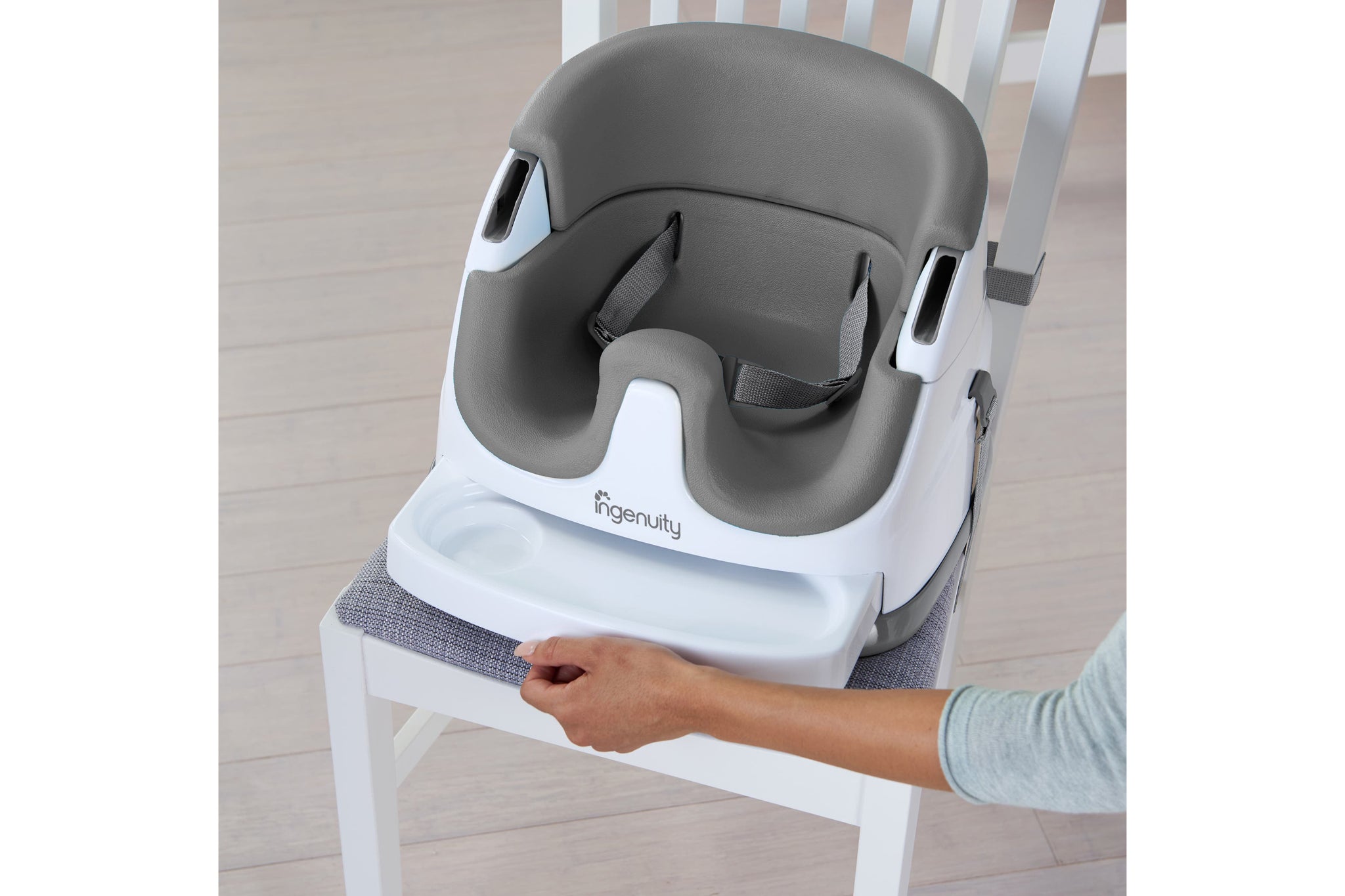 The Ingenuity Baby Base 2-in-1 Booster Seat works just as well sitting with you at the table or as a floor seat during playtime. The removable tray gives your baby her own perfectly sized table, so snacks or toys are easily within reach. When not in use, the tray conveniently tucks away right underneath the booster seat itself. As your baby grows, you can remove the foam seat insert and convert the baby booster into a toddler seat. For all those meals in between, you can count on the wipeable seat and dishwasher-safe tray to leave you more time for family catch-up and less for kitchen clean-up.