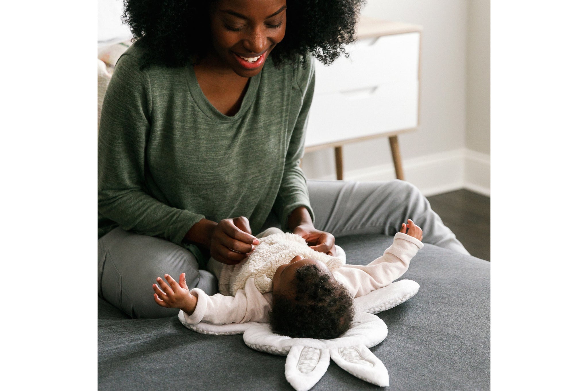 - Soothe baby through touch, sounds and lights