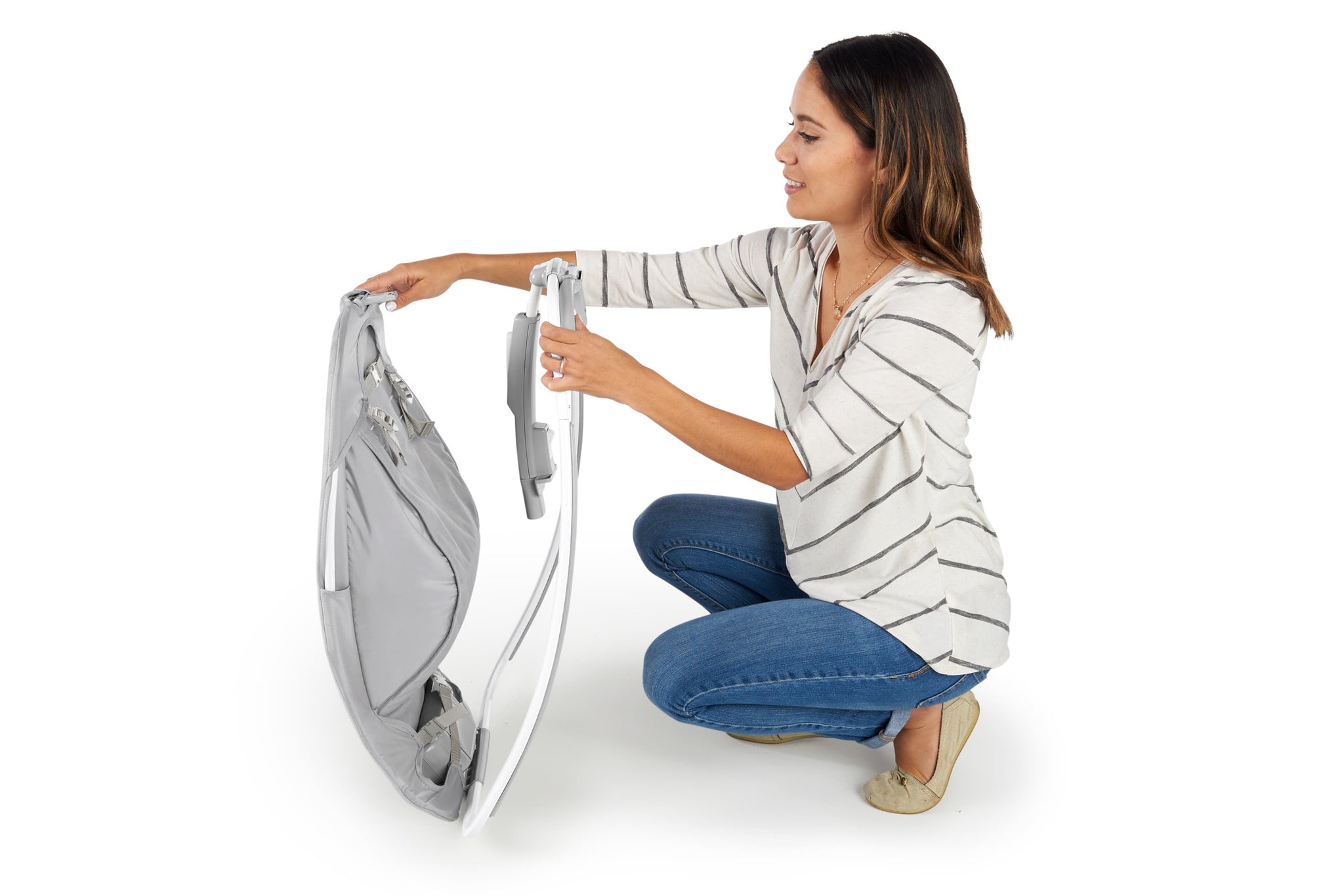 With a lightweight design, the Ingenuity Rocking Seat – Cuddle Lamb can be moved from room to room with you! Use as a rocking seat to soothe baby or securely lock into stationary mode. This snuggly seat will grow with your baby from a newborn rocker to a toddler seat, so you’ll enjoy years of use. 2 plush toys keep baby entertained and 3 recline positions make sure she’s always got the best seat in the house. Take comfort on-the-go with the foldable design for storage and transport.
