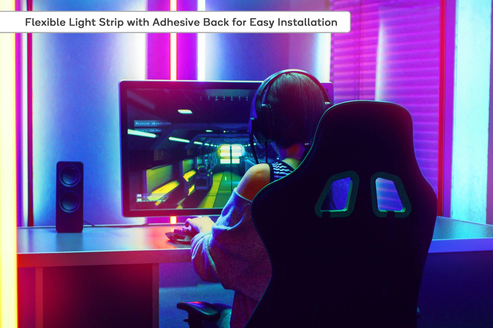 Enjoy flexible mounting options in any room around the house thanks to the adhesive backing that makes it easy to apply and set up the LED light strip wherever you want it.