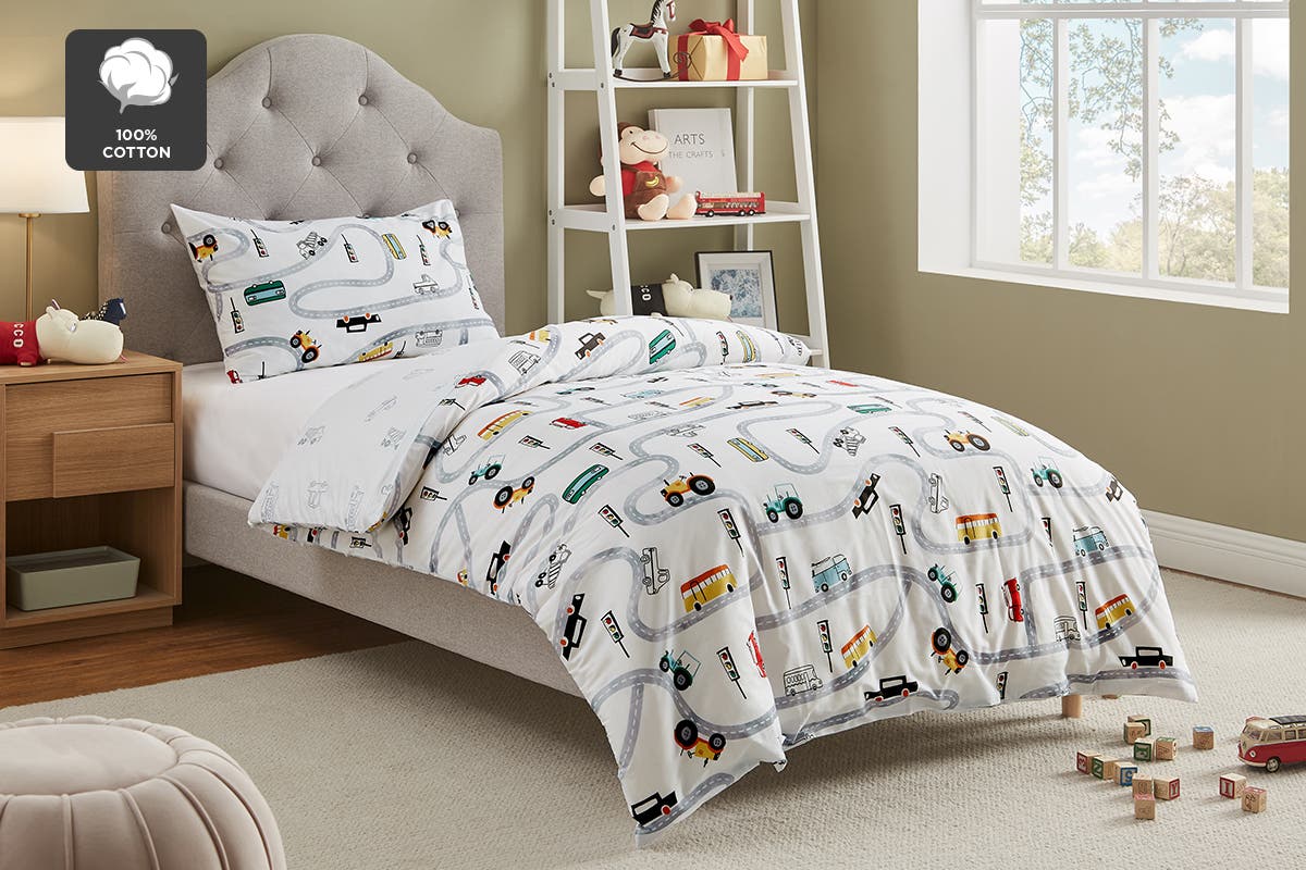 NNEKG Its A Traffic Jam Kids Quilt Cover Set (Multi Single)