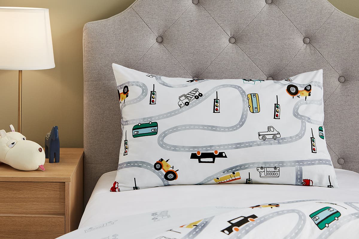 Inspire dreams of exploring and travelling with the reversible cartoon car and road print design that adds a friendly and playful touch to your child’s bedroom.