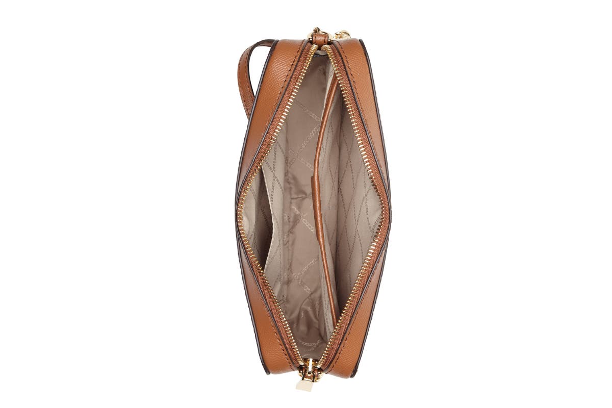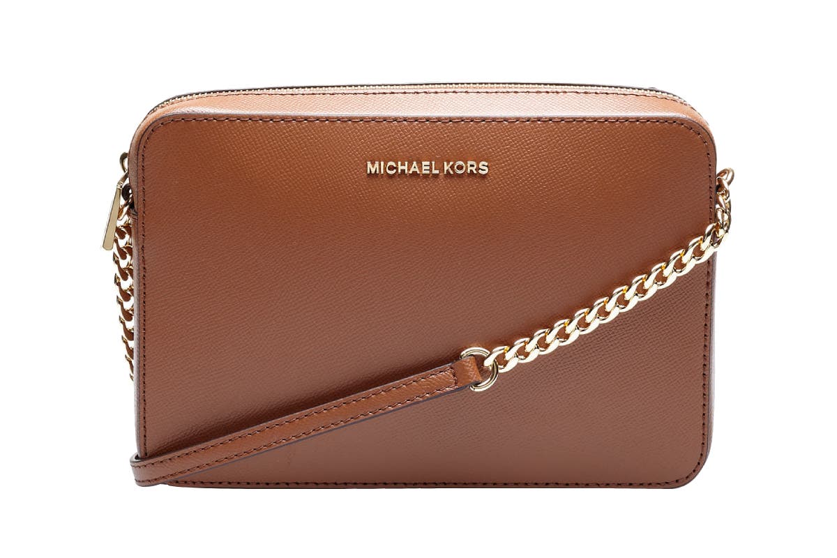 Structured in a clean-lined silhouette crafted from saffiano leather, the Michael Kors Jet Set Large Saffiano Leather Crossbody Bag is an instant classic. Gold-tone hardware speaks to a luxe sensibility, while a spacious interior offers easy organisation for your essentials.