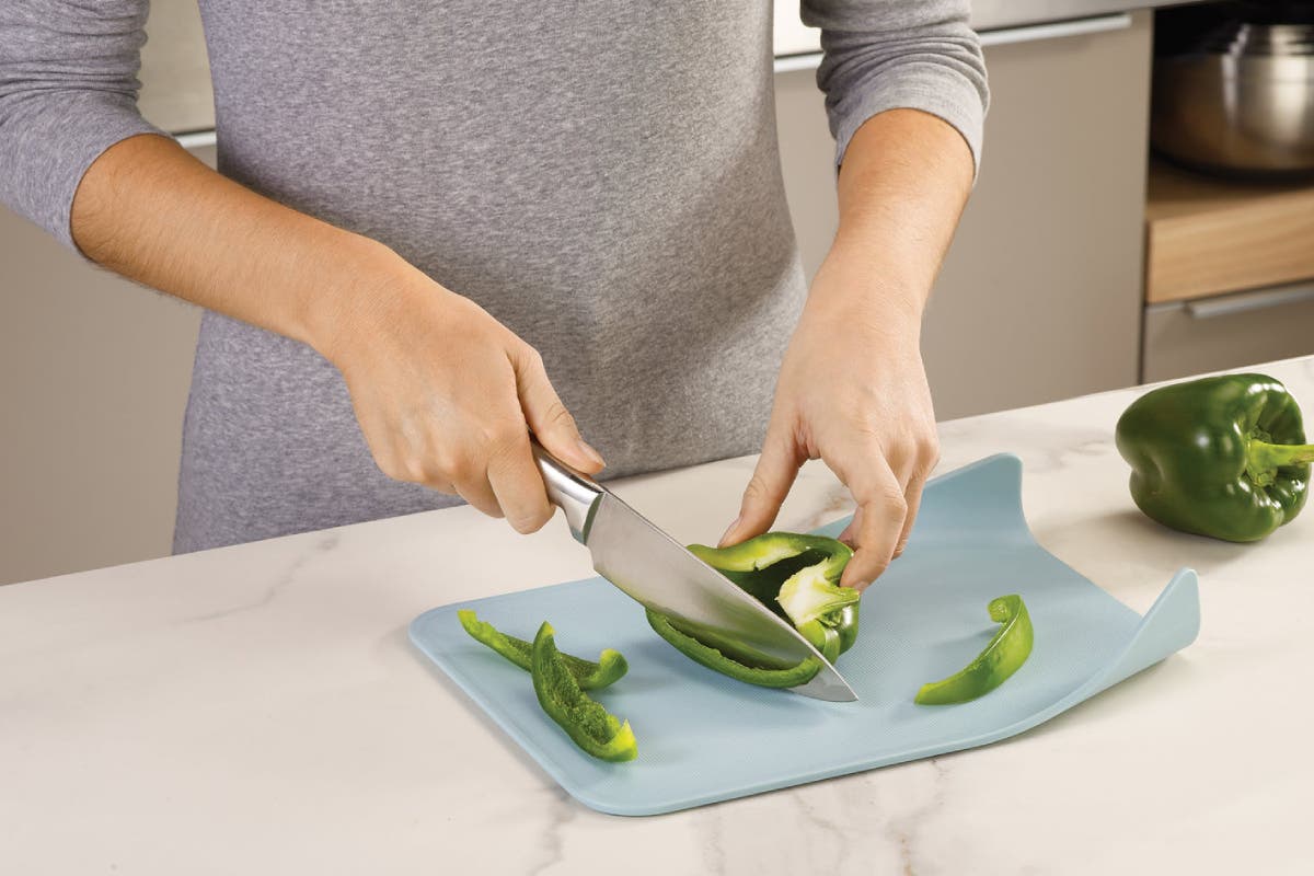 The 3 different sized chopping boards in the Joseph Joseph Nest Chop Chopping Board Set all stand upright and nest together to take up less room in your kitchen.