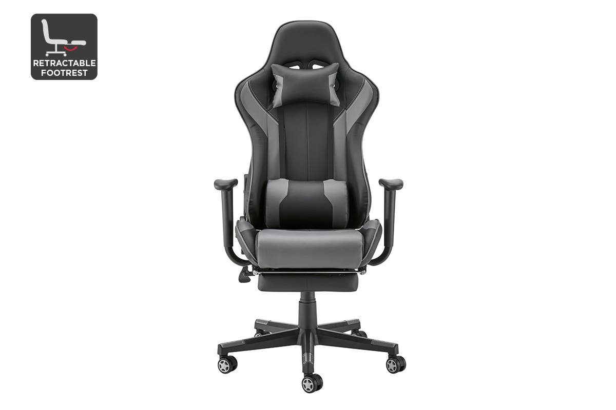 Blitz through work and fully immerse yourself in gameplay from the ultra-supportive padding and contoured comfort of this stylish gaming chair.