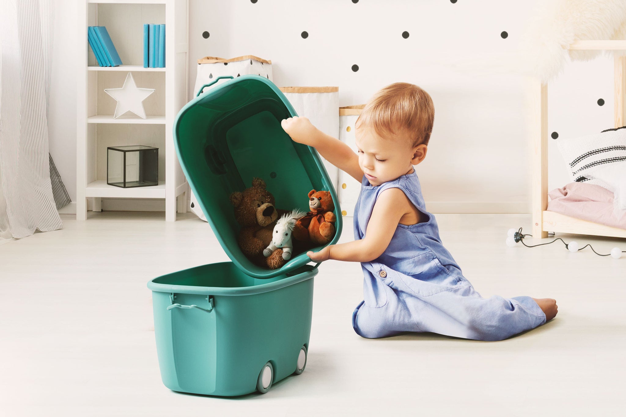 - Wheels make the boxes easy to move when tidying