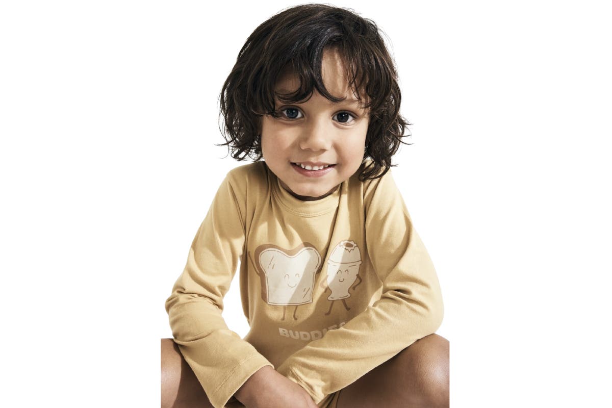The Bonds Kids Long Sleeve Organic Sleep Set is made with organic cotton. This kids long sleeve organics sleep set featuring a kid’s sleep tee and shorts.