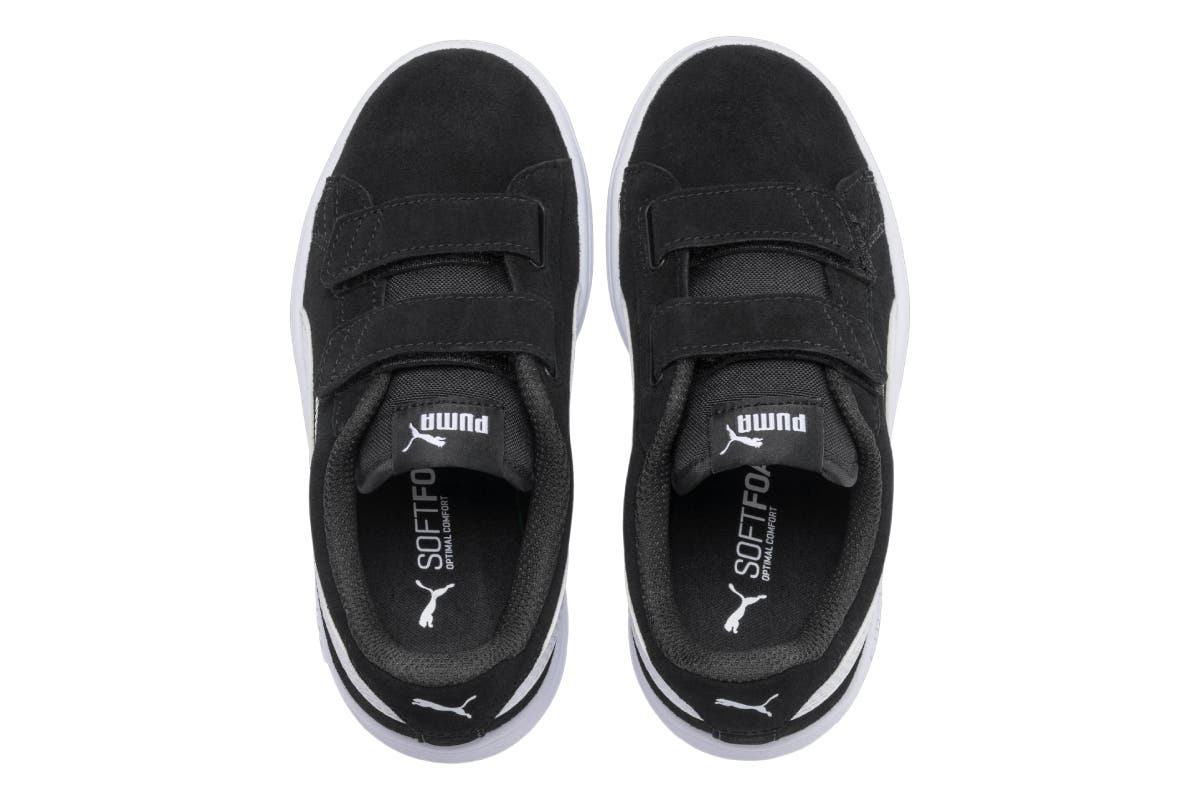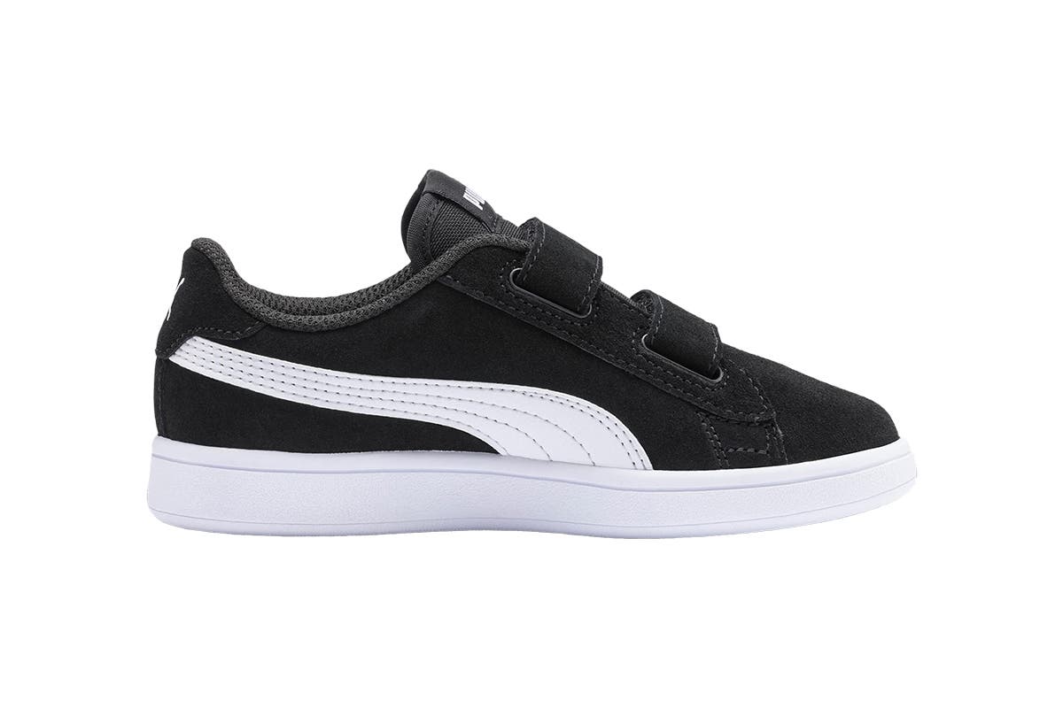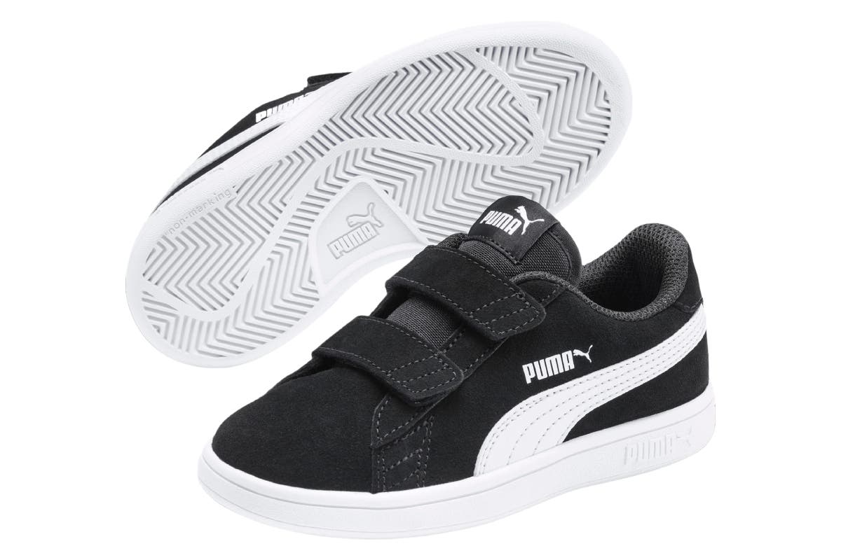 With all the hallmarks, including long, clean lines and the famous lateral Formstrip, Puma Kids’ Puma Smash v2 SD V PS Sneakers feature a leather upper with subtle colour contrasting that really pops off the pavement.