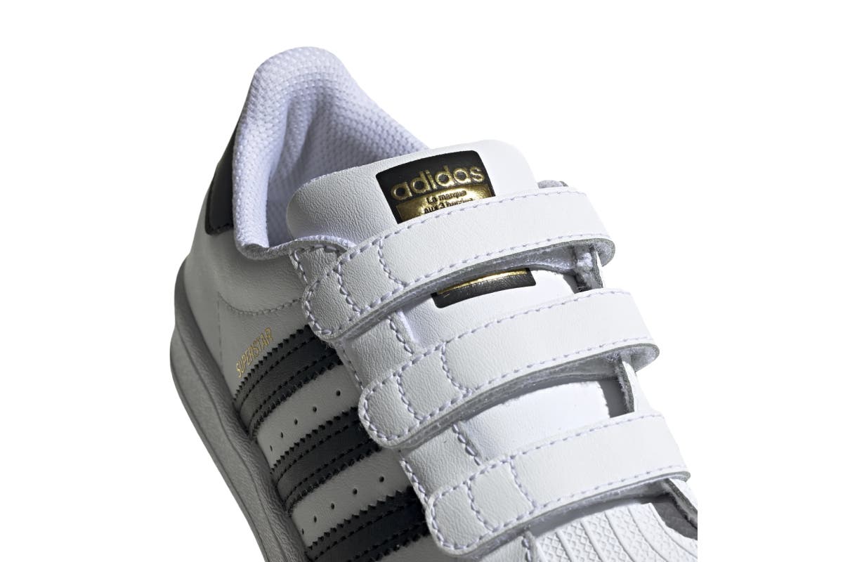 Adidas Kids’ Superstar CF C Casual Shoes stay true to the iconic B-ball look that’s been beloved for decades. Strap closures take the place of laces for easy-on-and-off that kids can do themselves.