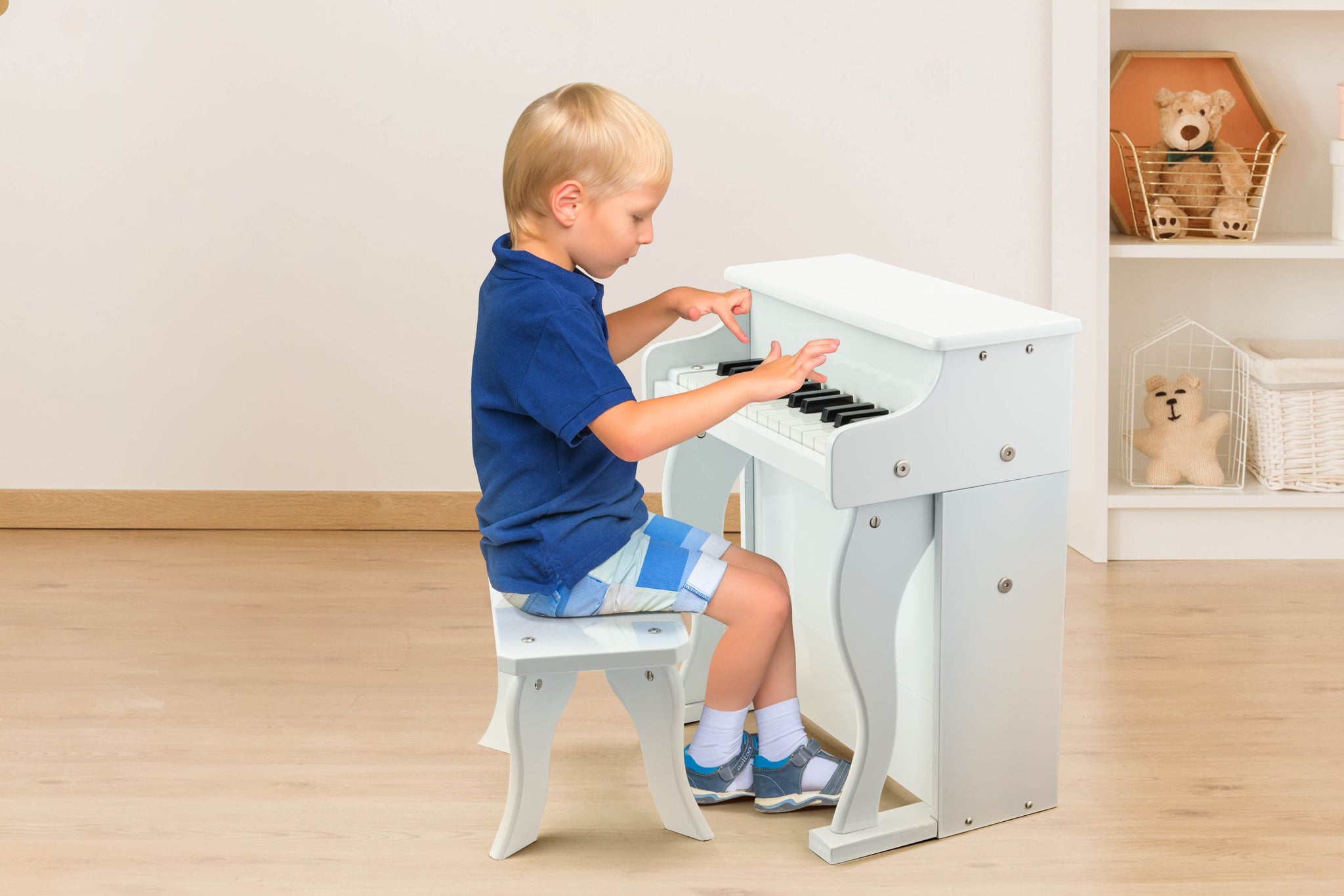 - Wooden toy piano and matching stool