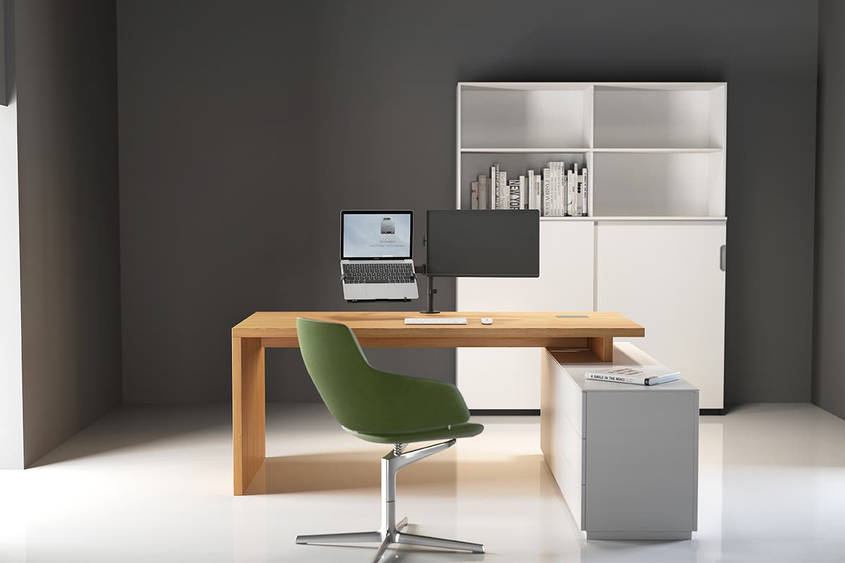 Experience advanced comfort and functionality in the office with a laptop holder that attaches to a VESA monitor mount, allowing you to change the height, angle and rotation of your device.