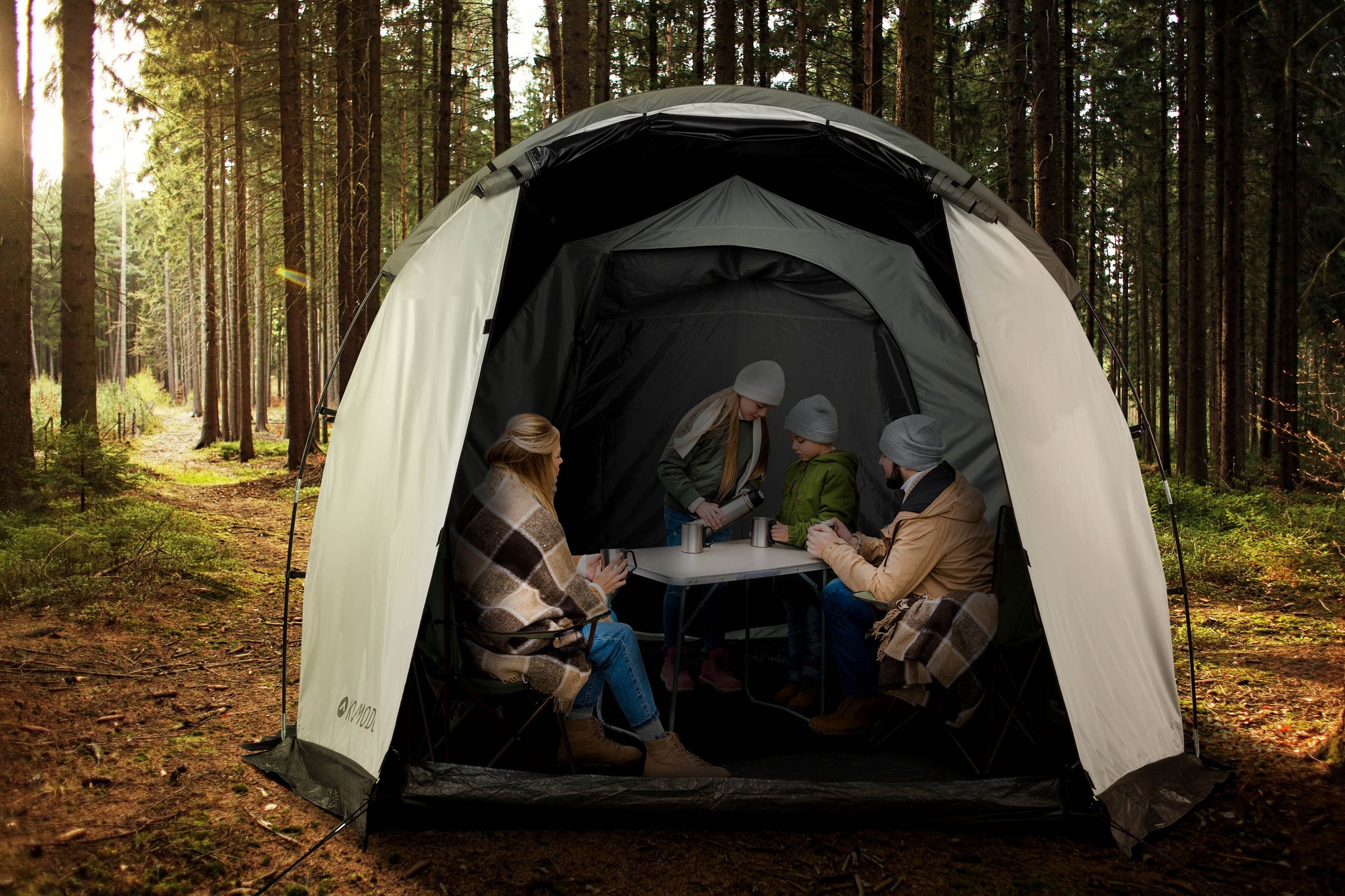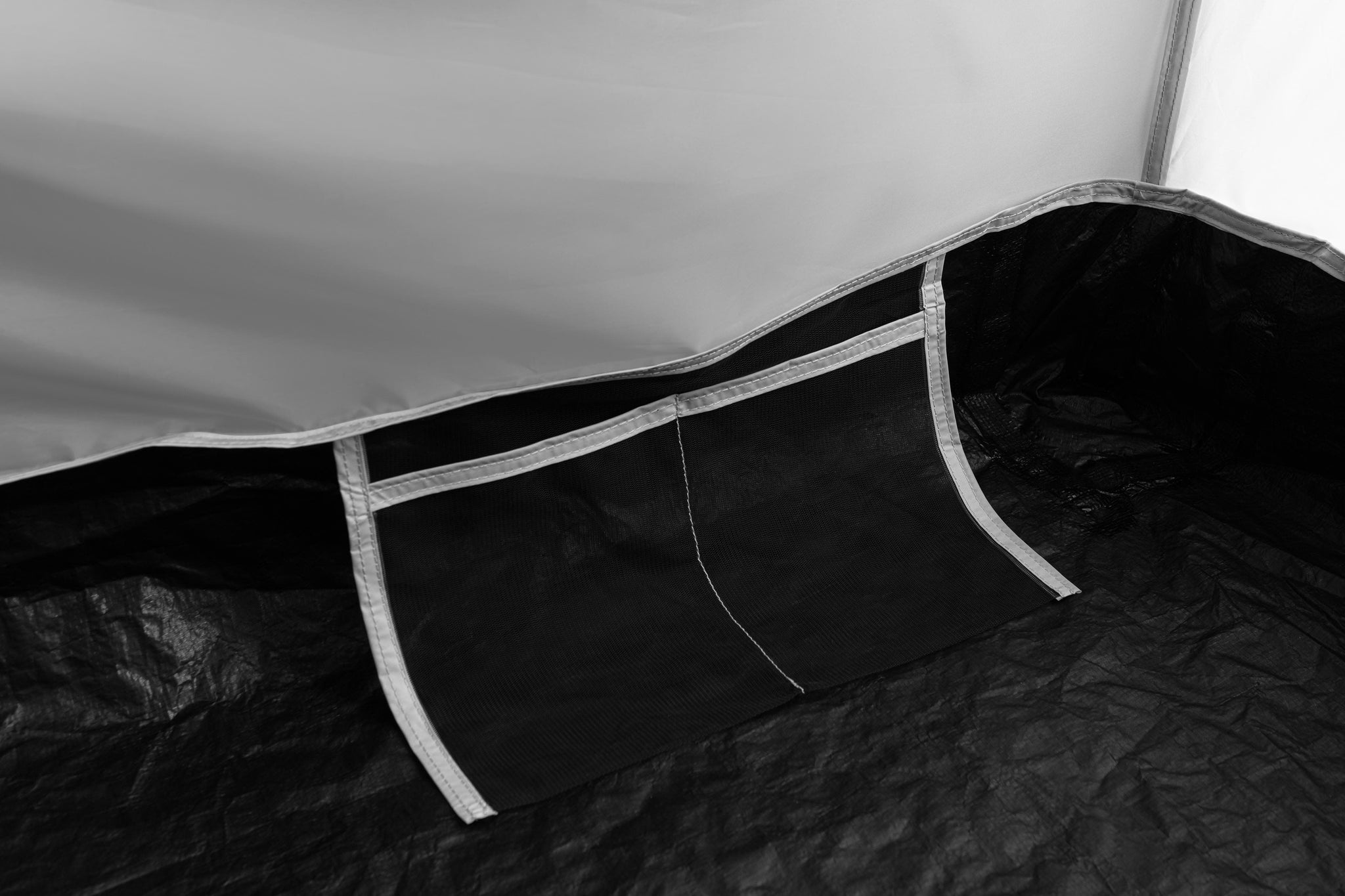 Able to withstand the harshest elements, the tent’s heavy-duty waterproof sheet protects you and your family from the rain, while the black coating provides a cooling respite from the heat of the sun.