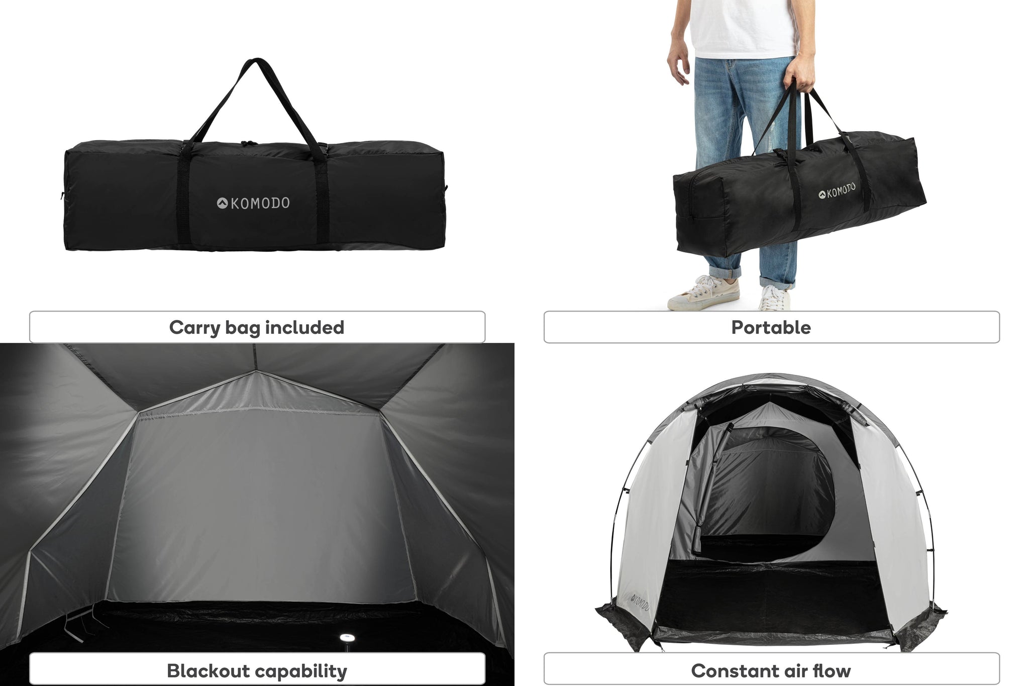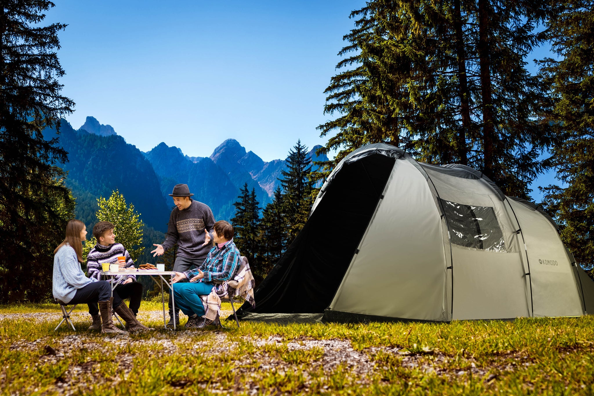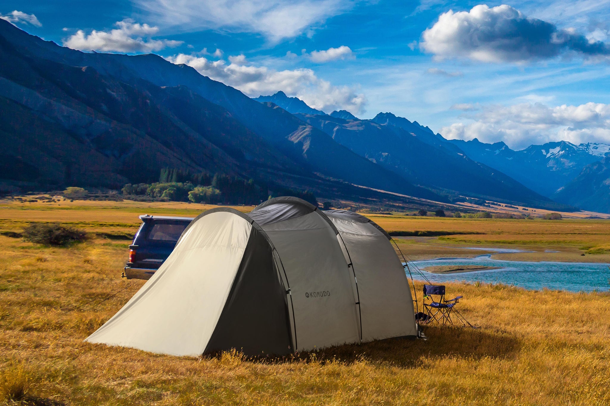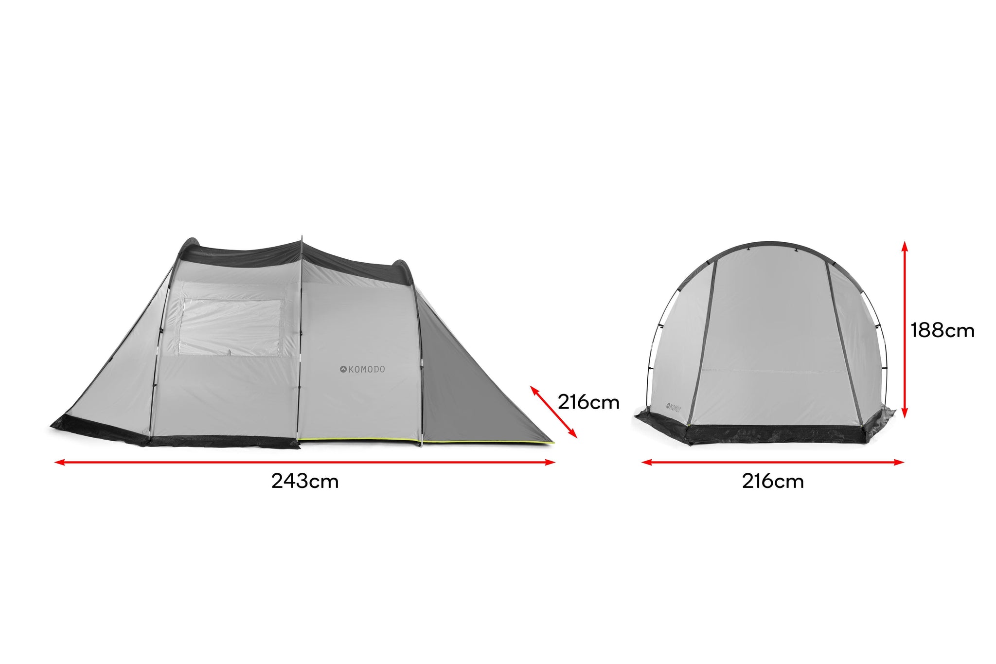 Taking no time to pitch and less to pack away into its small carry bag, the Komodo 1 Bedroom Family Camping Tent (4 Person) is the perfect tent for your next family camping trip.