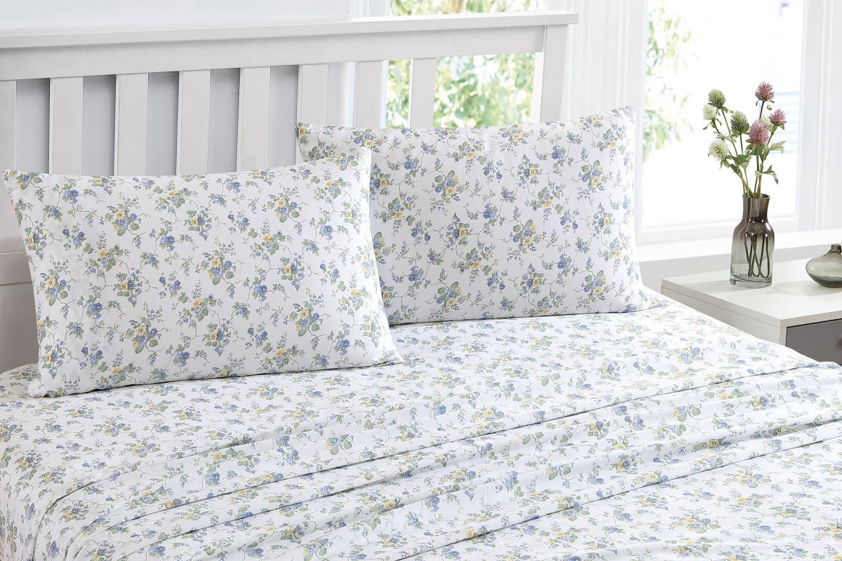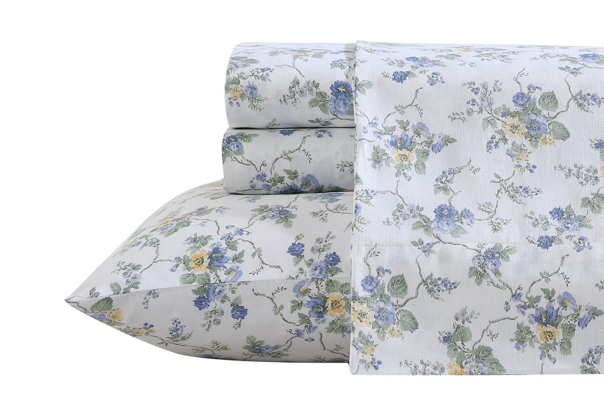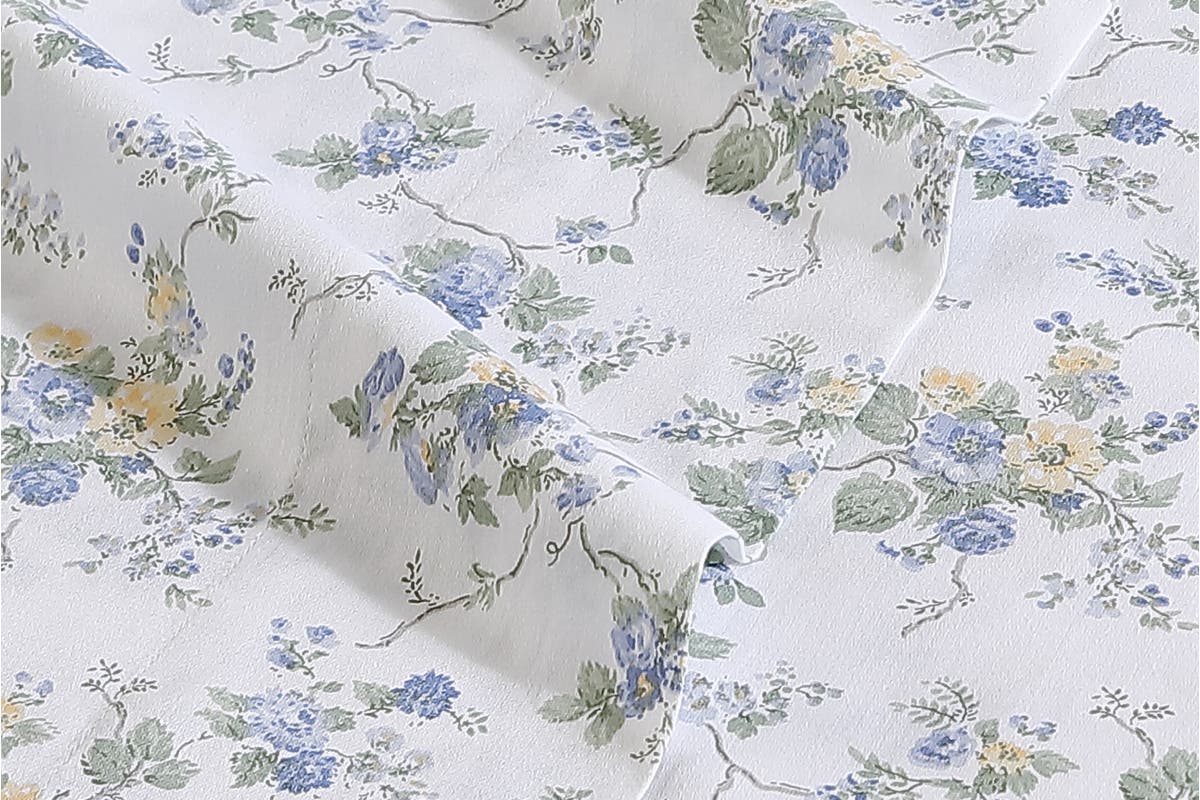 NNEKG Laura Ashley Le Fleur Cotton Sateen Sheet Set (King Cottage Blue)