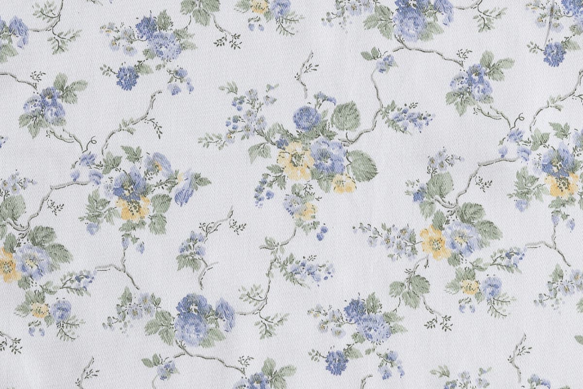 This Le Fleur sheet set features a petite floral print from the archive with a modern update in a fresh palette of blue and yellow on white with sage accents. 100% sateen cotton with a 375 thread count. Sheet set includes one flat sheet, one fitted sheet and two pillowcases.