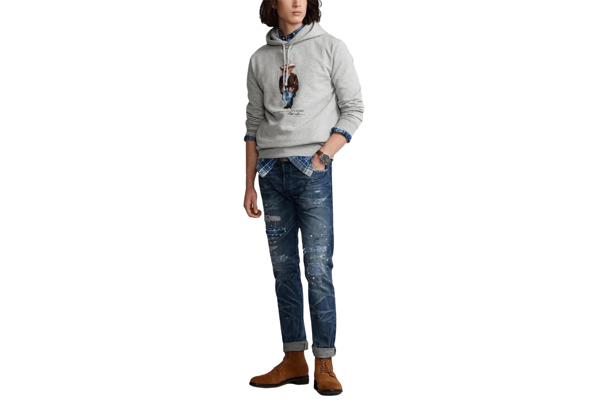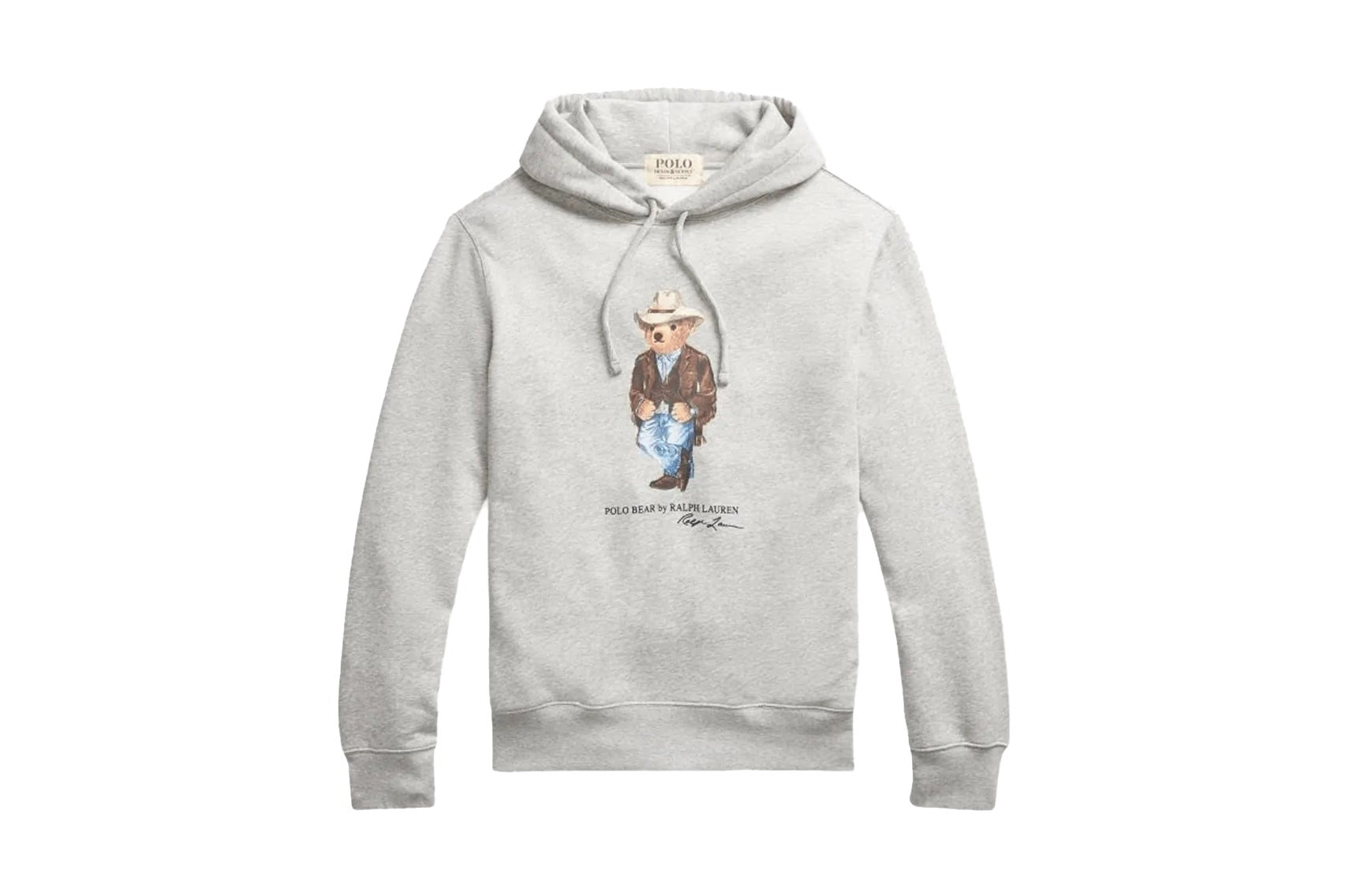 This grey hoody from Polo Ralph Lauren is cozy and gives off good vibes. It is made from a super-soft cotton blend and has a snug drawstring hood. There is a fun-loving cowboy bear graphic printed on the front.
