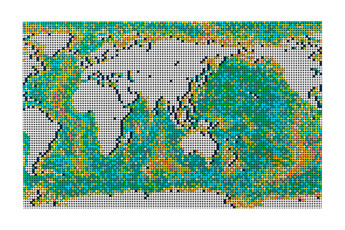 This re-interpretation of a classic world map lets you put your creativity on display. You can use the included inspiration to build the map or customise the oceans to give the map a personal twist and rebuild the world. Landmass sections can be moved to refocus the map on 1 of 3 sections of the world. Customise it further with colourful brick-built pins to highlight meaningful places.