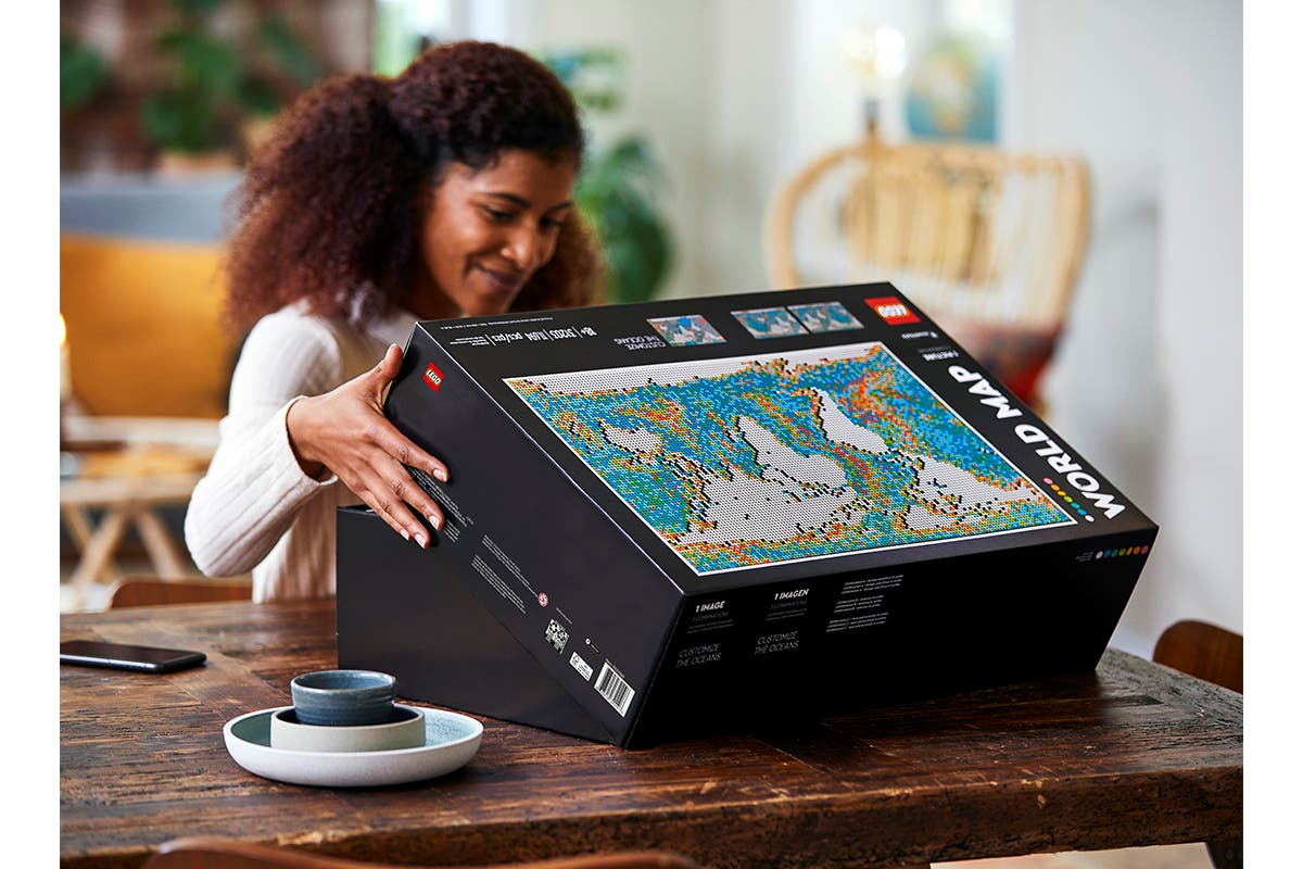 Explore the world without leaving home with the LEGO ART World Map. It’s the largest LEGO set to date and can be used to make and display 1 of 3 vibrant maps.