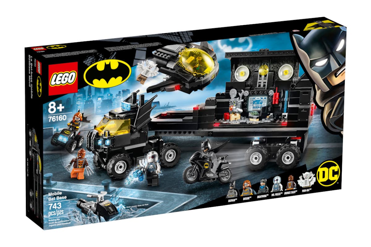 With 6 popular LEGO DC minifigures from the Batman movies, the LEGO Mobile Bat Base gives kids everything they need to explore an exciting world of Batman adventures! Kids join Batman, Batgirl and Nightwing on the hunt for notorious Super-Villains Mr. Freeze, Man-Bat and Bronze Tiger.