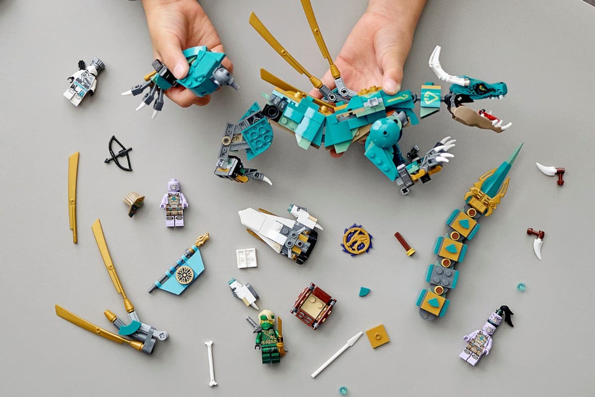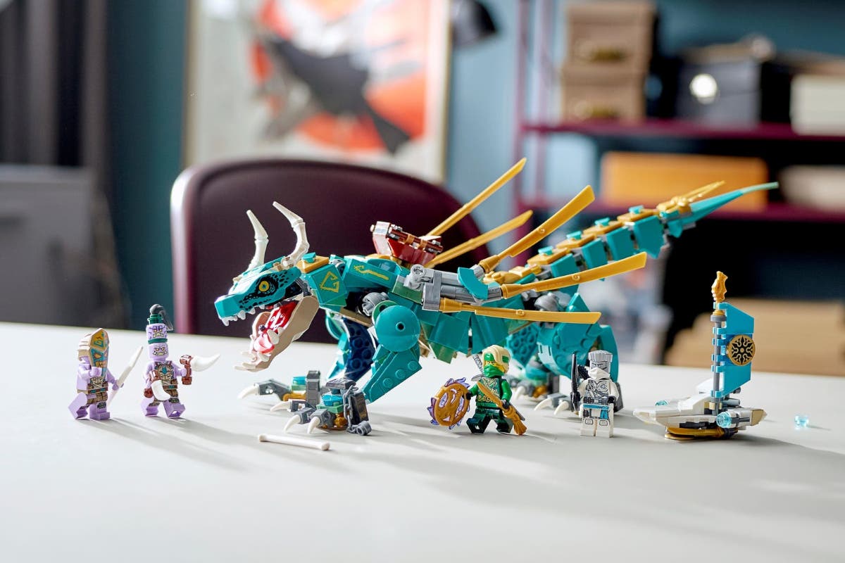 The dragon toy comes with 4 minifigures: Island Lloyd, Island Zane, PoulErik and Thunder Keeper, all armed with weapons so kids can play out gripping clashes to grab the storm amulet. There is also a surfboard with a shooting function to add even more fun to battles.