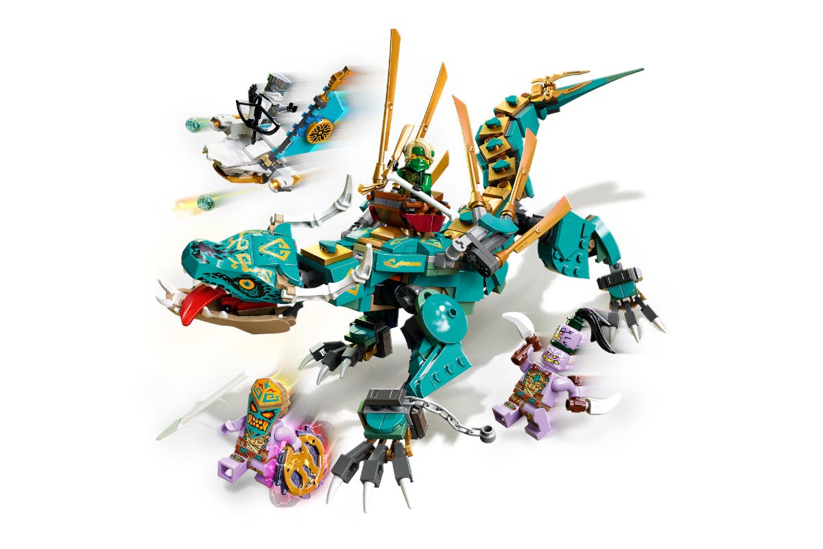Featuring highly posable wings, legs and tail, a jaw that opens and closes, plus a saddle for a ninja to ride in, the LEGO Ninjago Jungle Dragon inspires the best imaginative play.