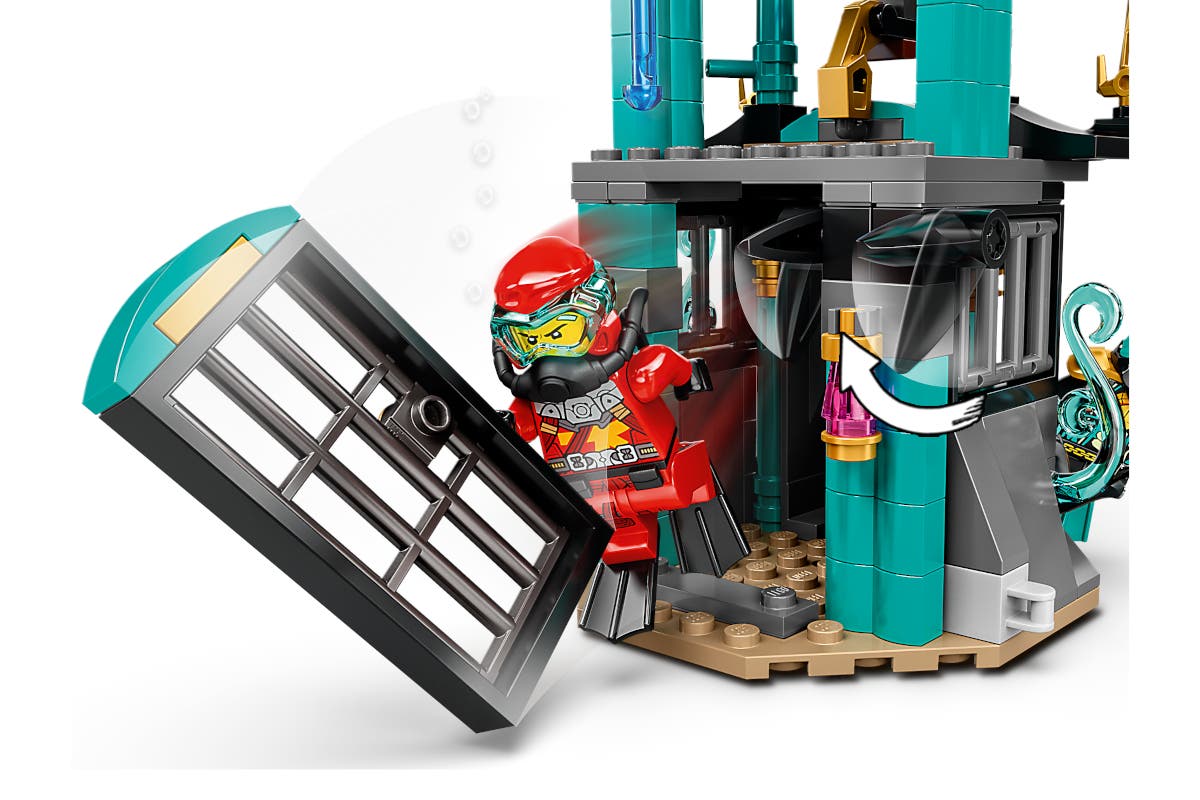 Ninja fans can re-enact underwater adventures from the LEGO Ninjago Temple of the Endless Sea. This detailed premium ninja playset includes a laboratory, a prison, a submarine, a manta ray and the sea serpent Wojira in chains.