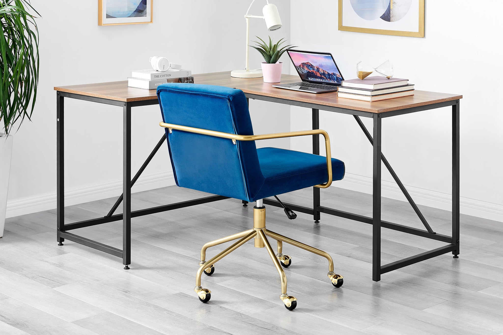 A sleek, contemporary L-shaped design adds a modern feel to your home office that lets it fit into a corner and freshen up your workspace, keeping you productive and refreshed.