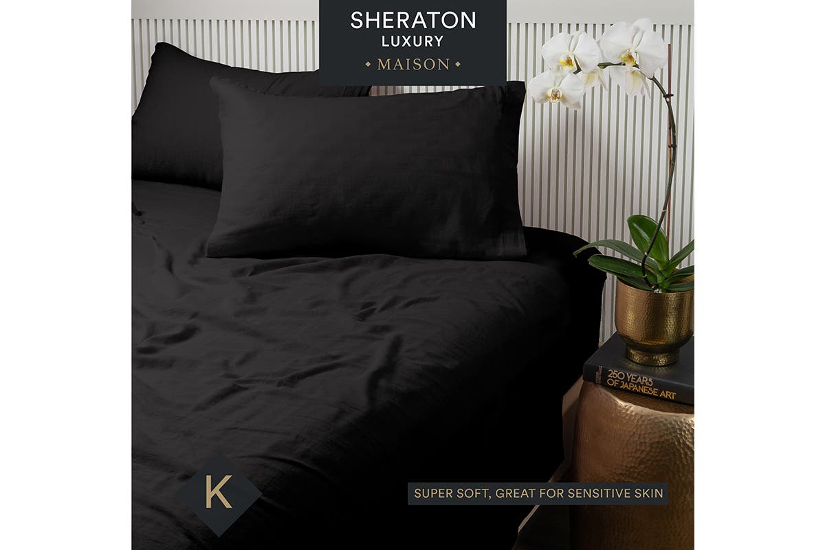 The Sheraton Luxury Maison Linen Cotton Sheet Set – King provides a relaxed and elegant style that can enhance the interior of any bedroom. The unparalleled softness provides comfort and being naturally hypoallergenic allows peace of mind for the sensitive skin.