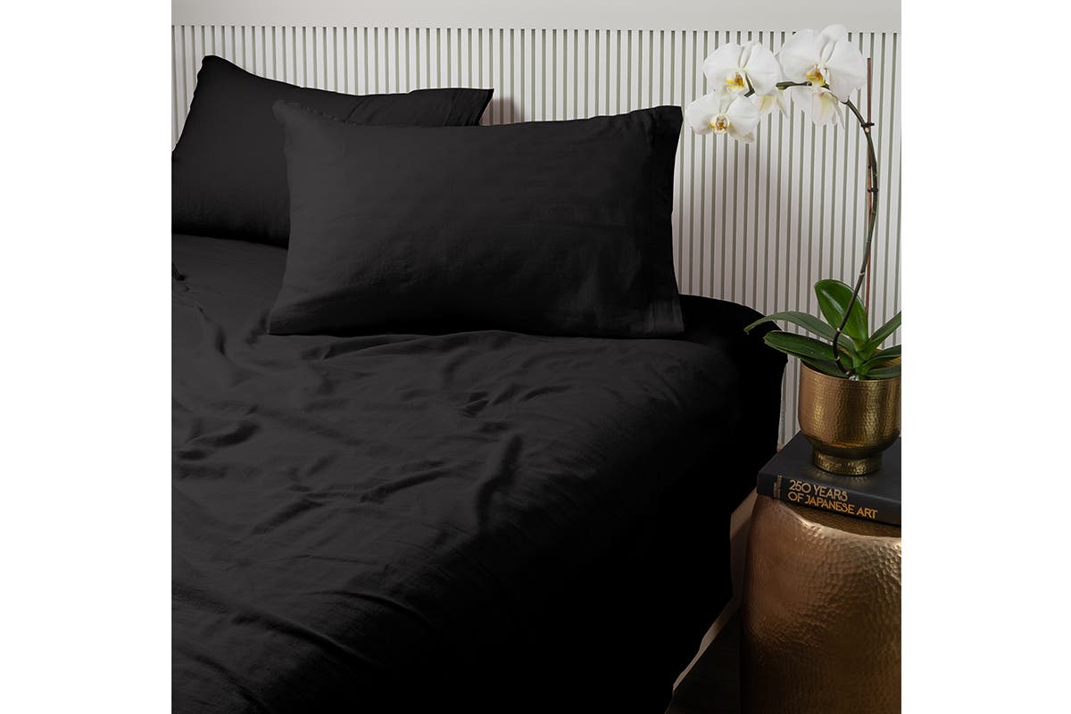 NNEKG Luxury Maison Linen Cotton Sheet Set (King Charcoal)