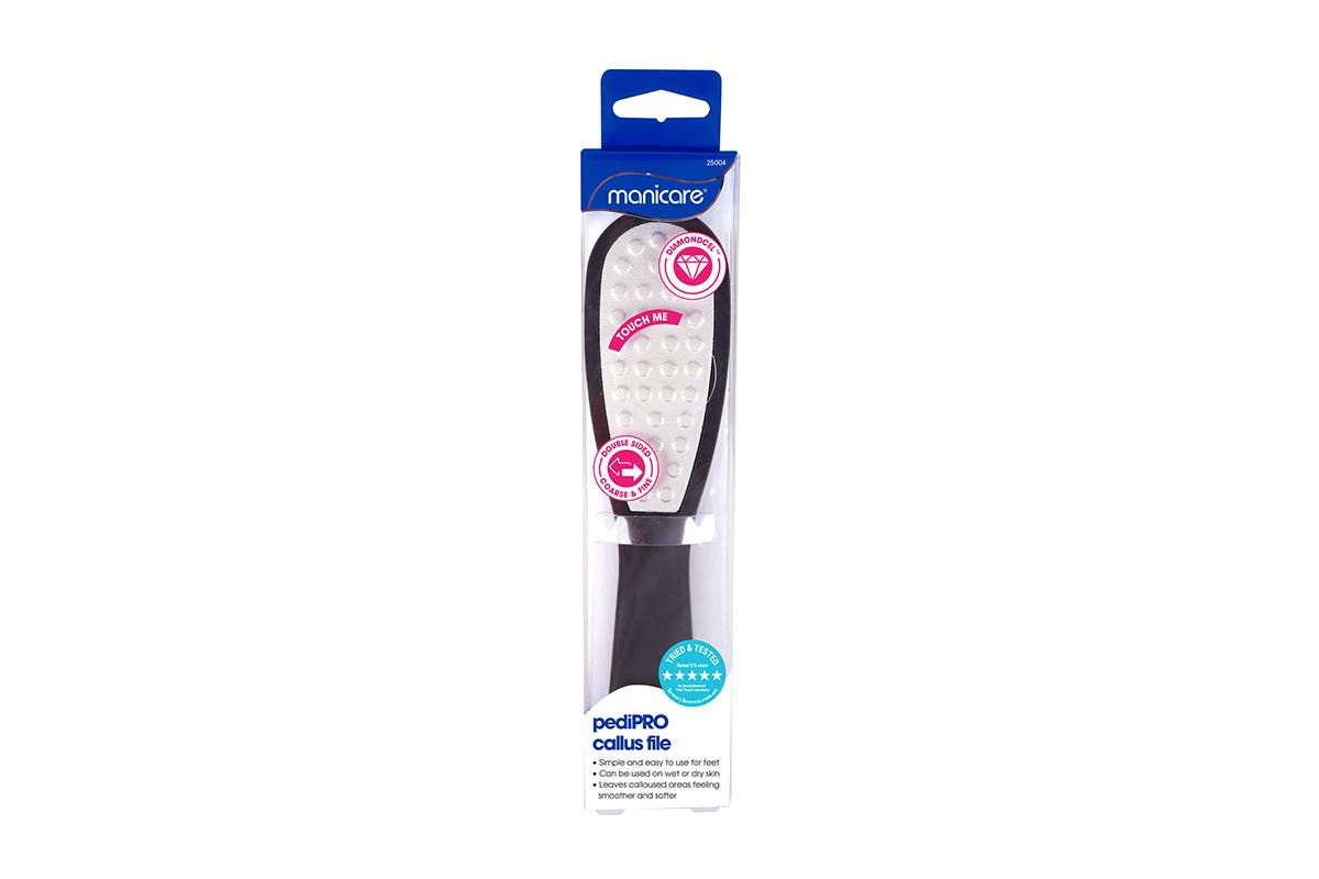 The Manicare pediPRO Callus File has Diamondcel multidirectional grit design that files your calluses easily and quickly. It is simple and easy to use for your feet, leaving calloused areas feeling smoother and softer.