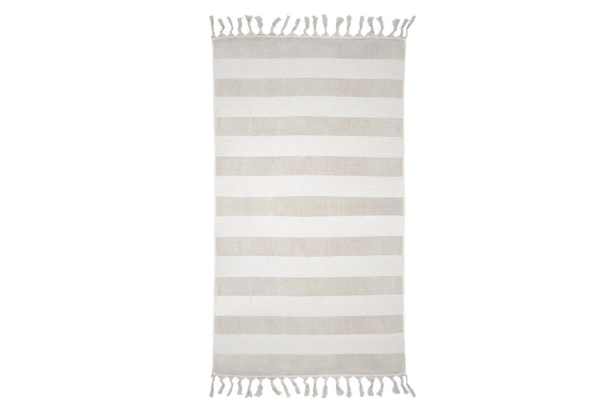 The Bambury Marbella Towel is an ideal accessory for the beach or pool. It features a classic stripe that is made using a high-low pile technique, as well as a velour finish and playful knotted tassels along both ends.