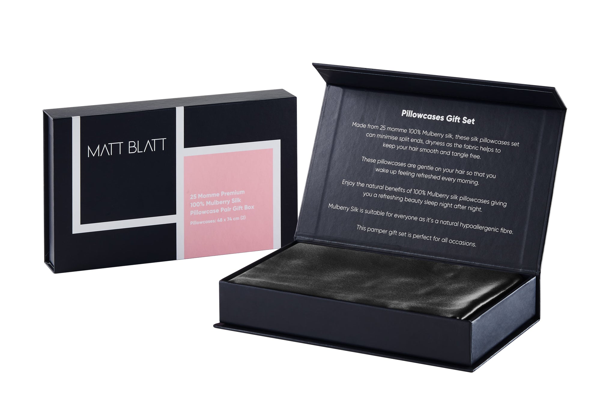Get your beauty sleep with the Matt Blatt 25 Momme Premium 100% Mulberry Silk Pillowcase Pair Gift Set that is expertly spun with the finest quality silk on both sides.