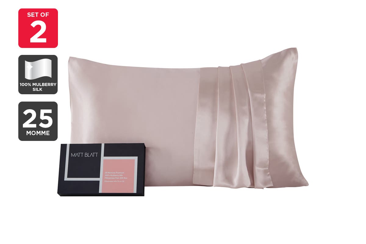Get your beauty sleep with the Matt Blatt 25 Momme Premium 100% Mulberry Silk Pillowcase Pair Gift Set that is expertly spun with the finest quality silk on both sides.