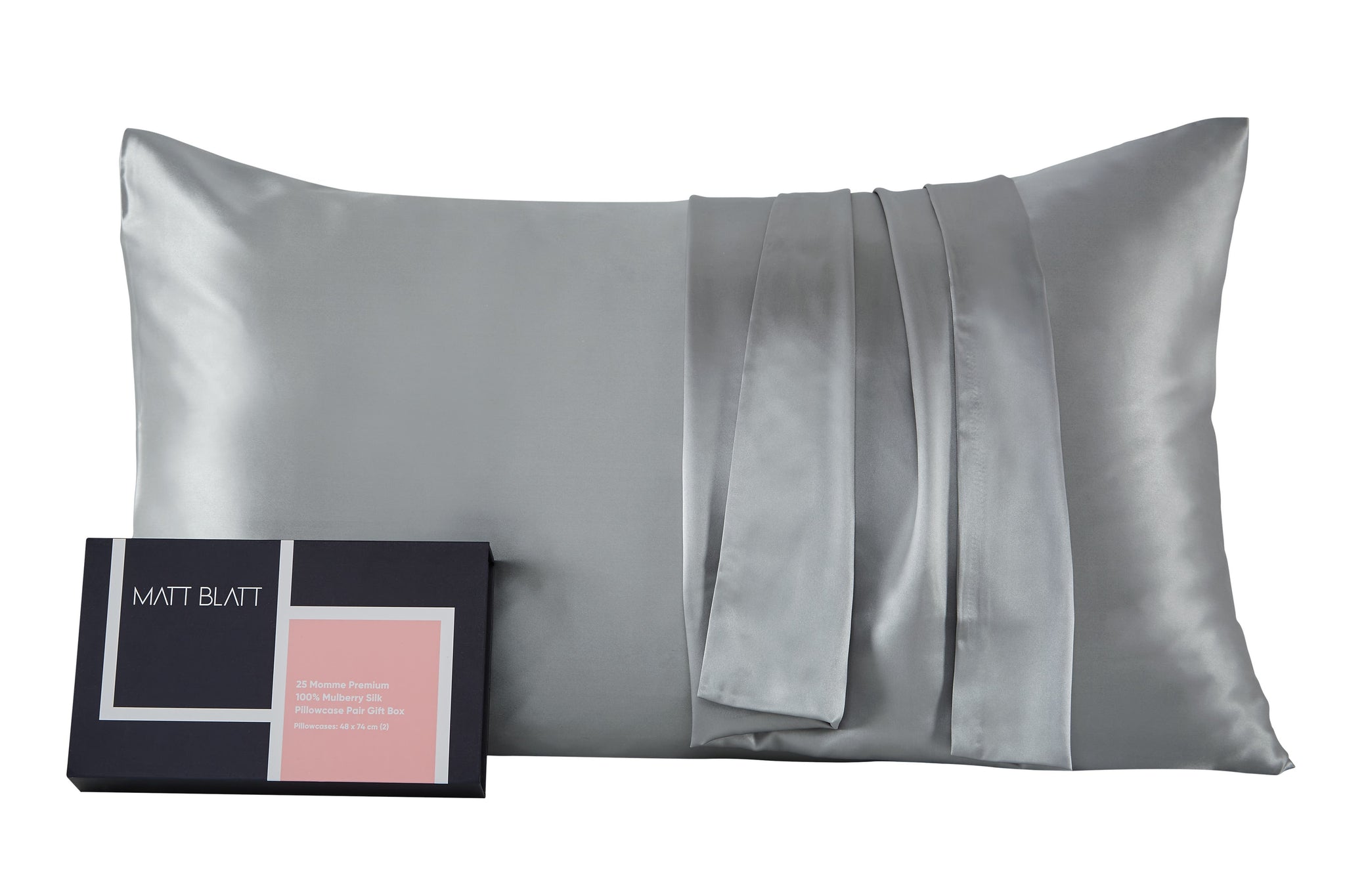 NNEKG Matt Blatt 25 Momme Premium 100% Mulberry Silk Pillowcase Pair Gift Set (Silver)