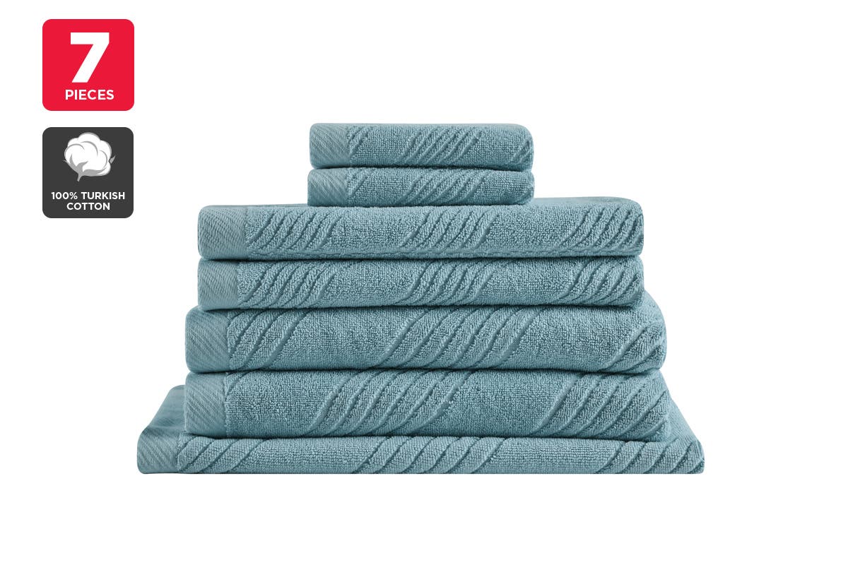 NNEKG Matt Blatt 7 Piece Brianca Textured Turkish Cotton Towel Set (Lagoon)