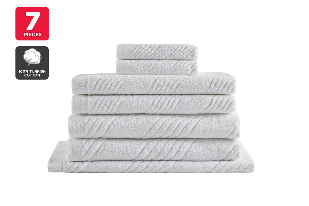 NNEKG Matt Blatt 7 Piece Brianca Textured Turkish Cotton Towel Set (White)