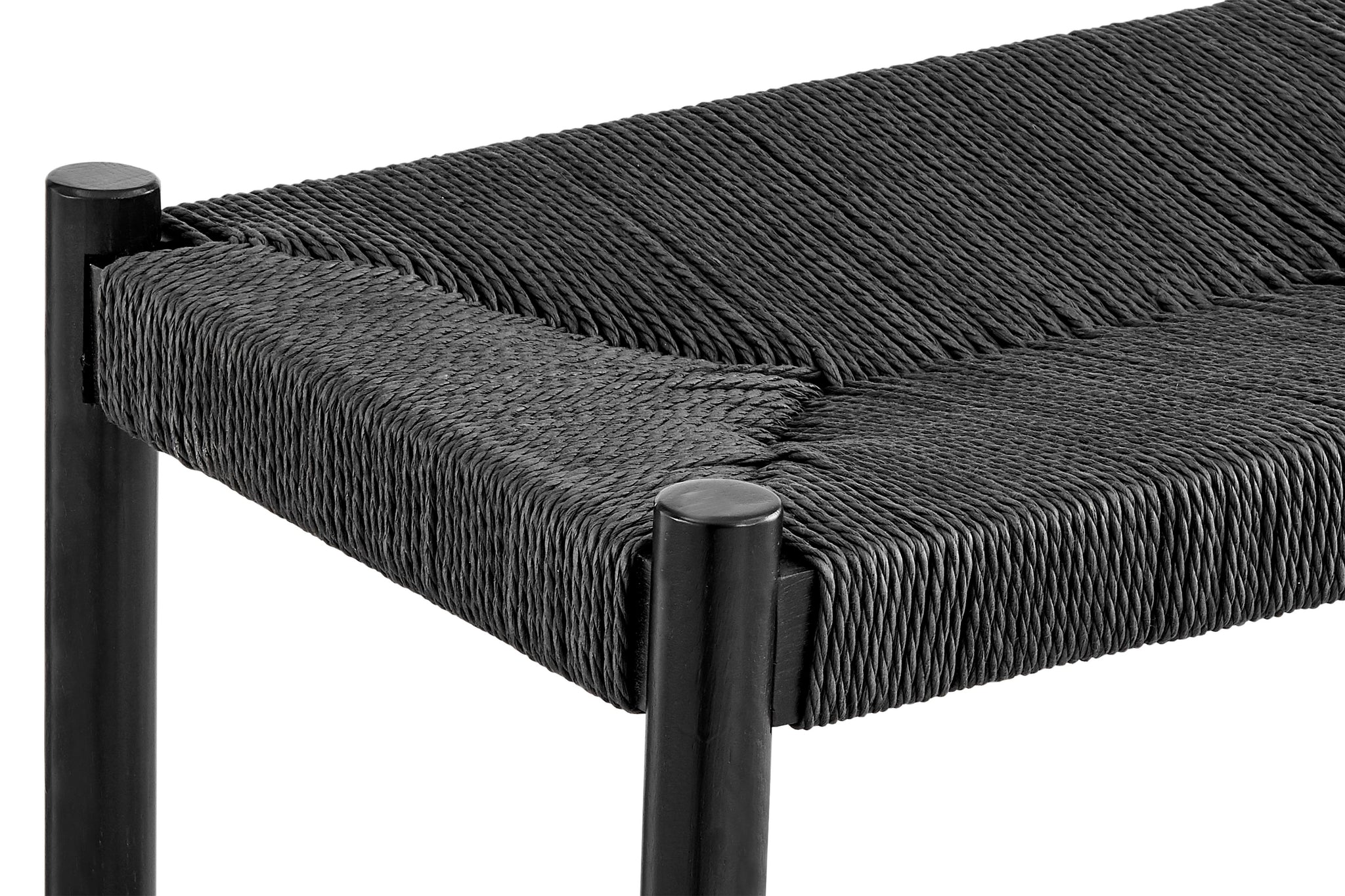 The handwoven cowhide rope upholstery is paired with a sleek all-black finish that seamlessly blends the homely with the modern to create a piece that adds an air of rustic flair to whichever space it’s placed in.