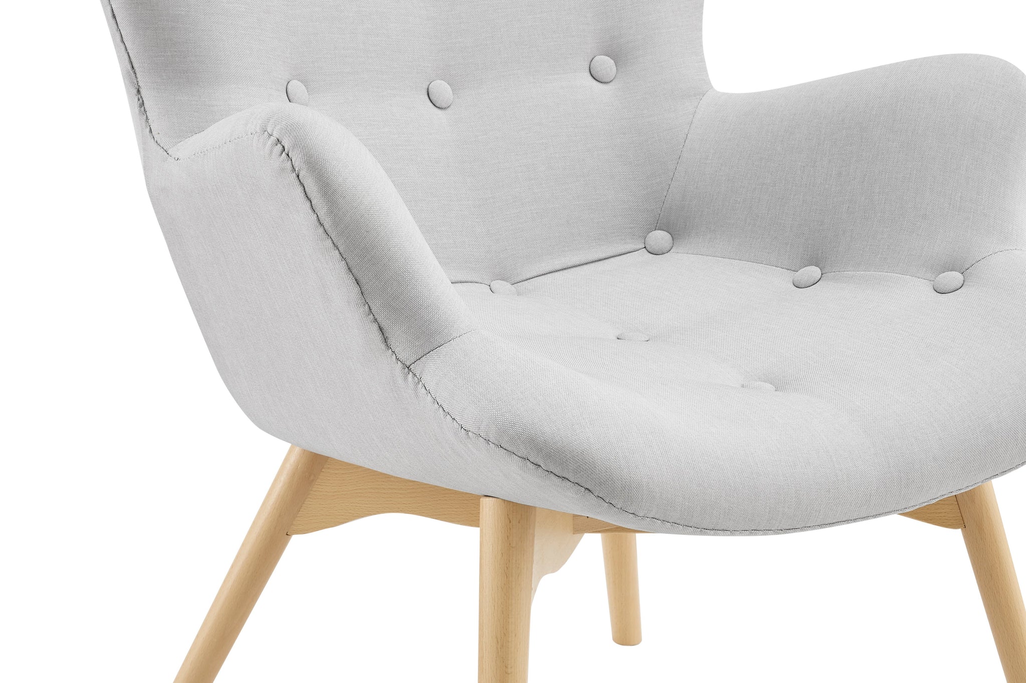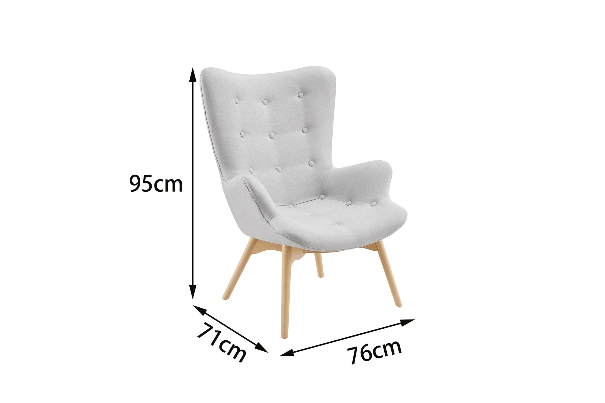 Curl up in comfort in front of the TV or with a good book thanks to the luxurious sponge cushioning and soft fabric upholstery of this armchair with a design that adds the timeless elegance of the 1950s to your living room.
