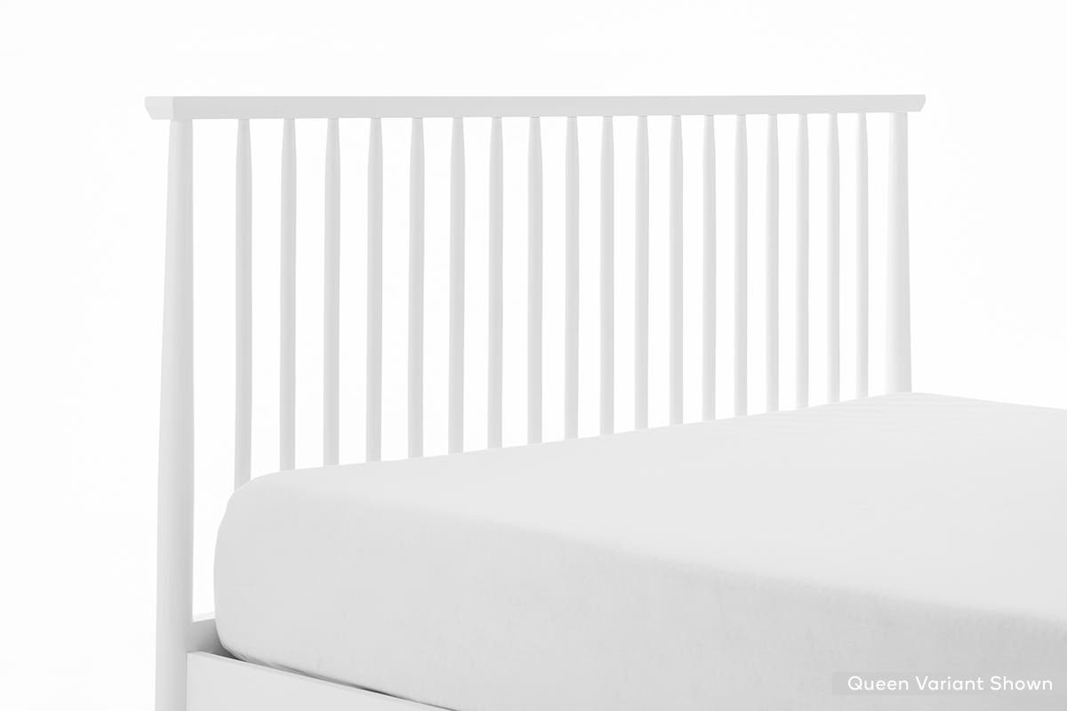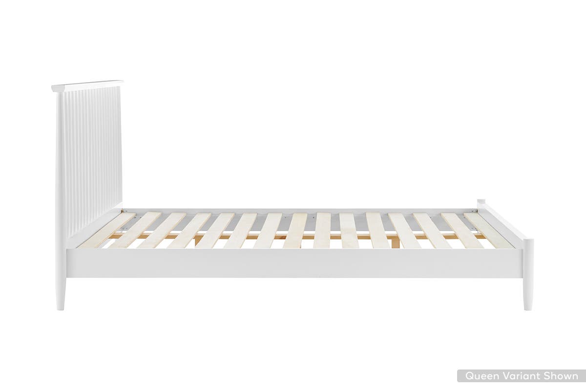 Constructed from solid timber, finished with a white-laquered sheen, wooden slats with tree-trunk strength and a reinforced mid-beam this bed will last for many moons to come.