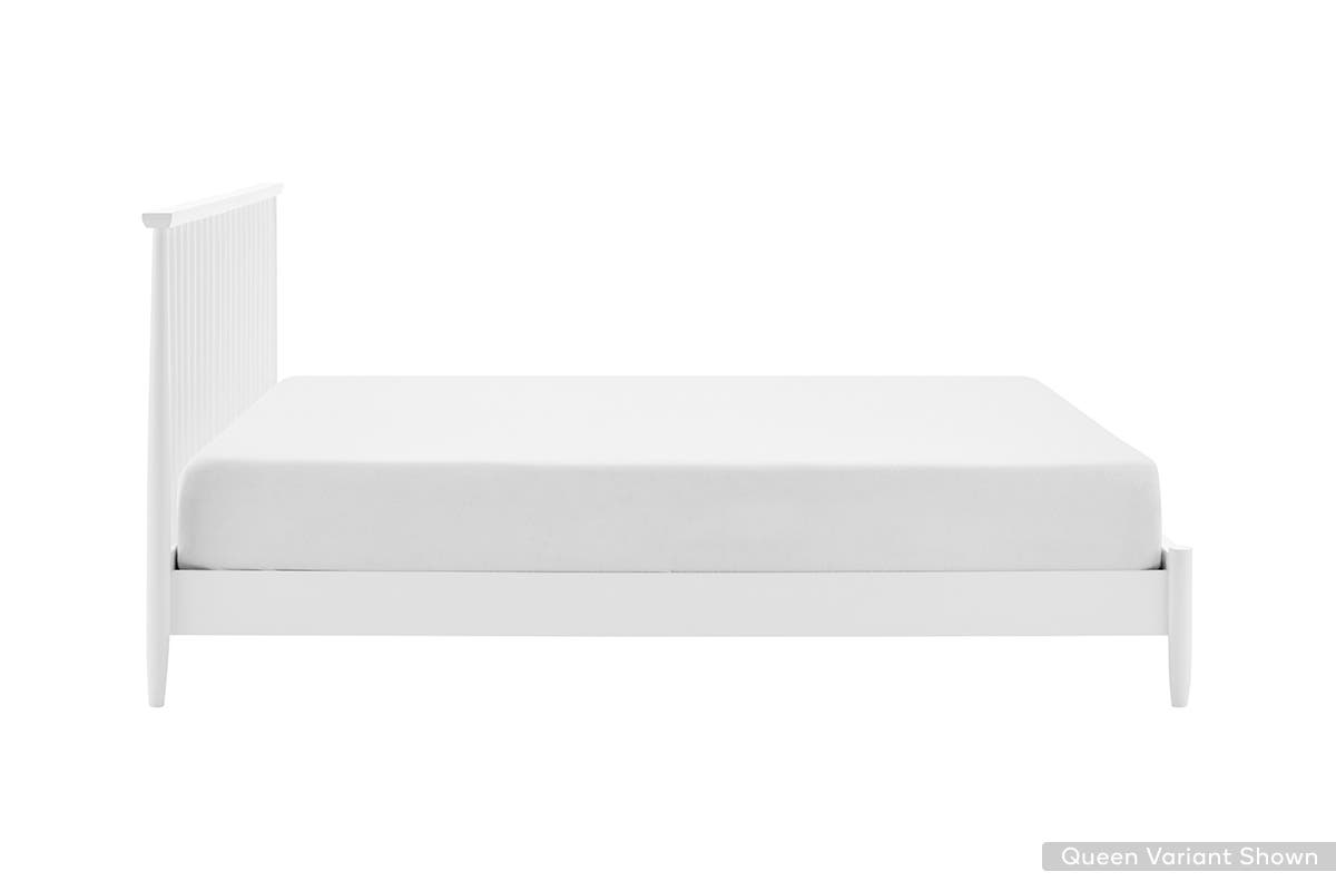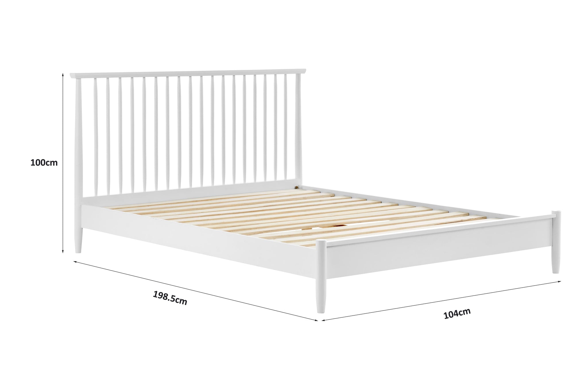 Constructed from solid timber, finished with a white-lacquered sheen, wooden slats with tree-trunk strength this bed will last for many moons to come.