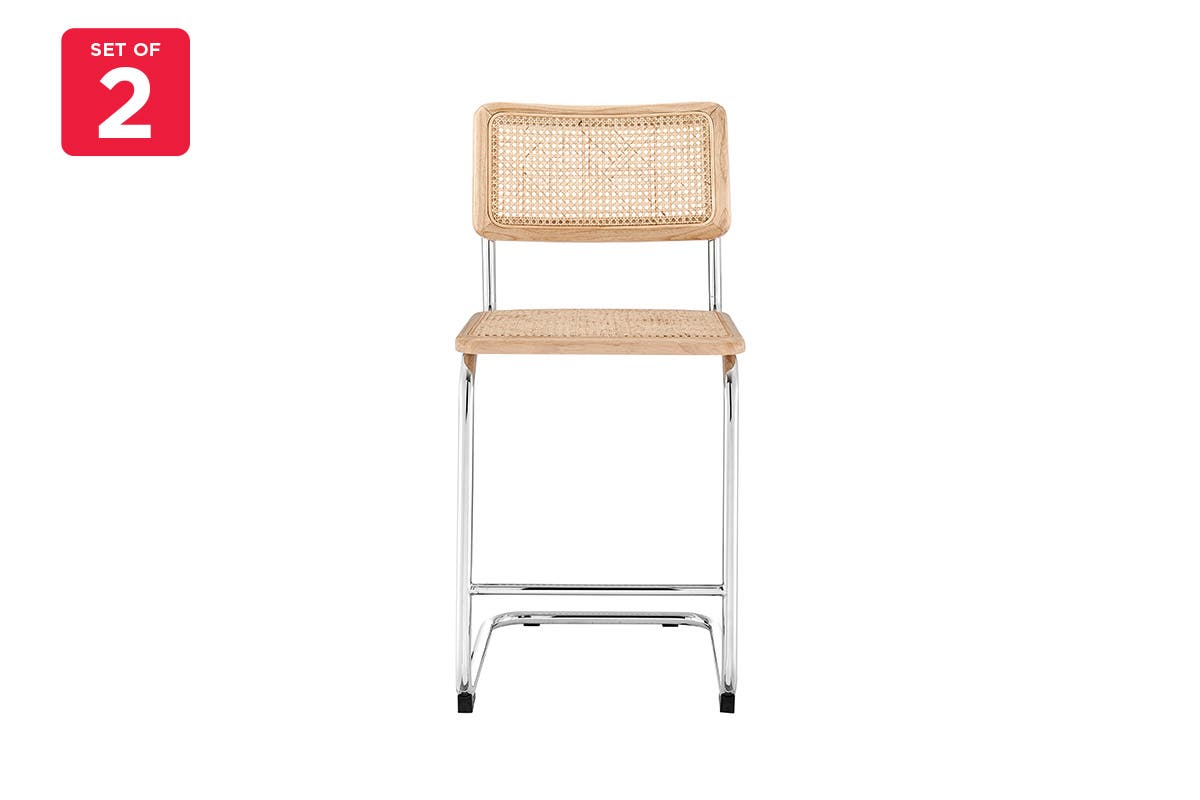 Dress up your dining area in style with the Matt Blatt Marcel Breuer Cesca Chair Replica Set of 2 Counter Stools (Natural/Rattan) that boasts an authentic Cesca design and stylish rubberwood and rattan upholstery so that your living or dining area has a touch of Bauhaus feel.