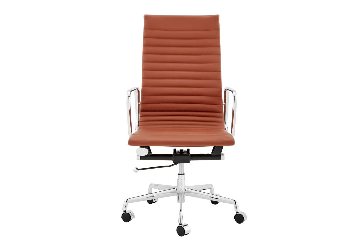 NNEKGE Replica Eames Group Standard Aluminium High Back Office Chair (Tan Leather)