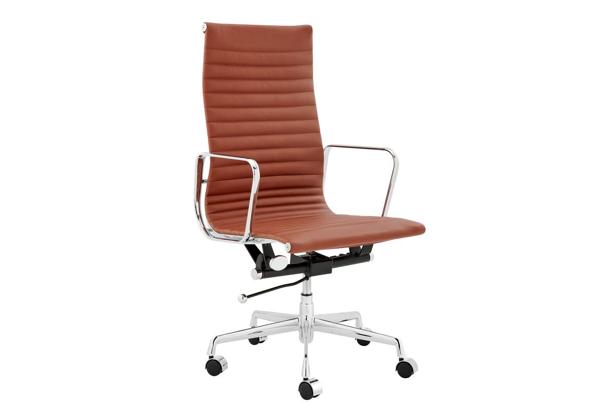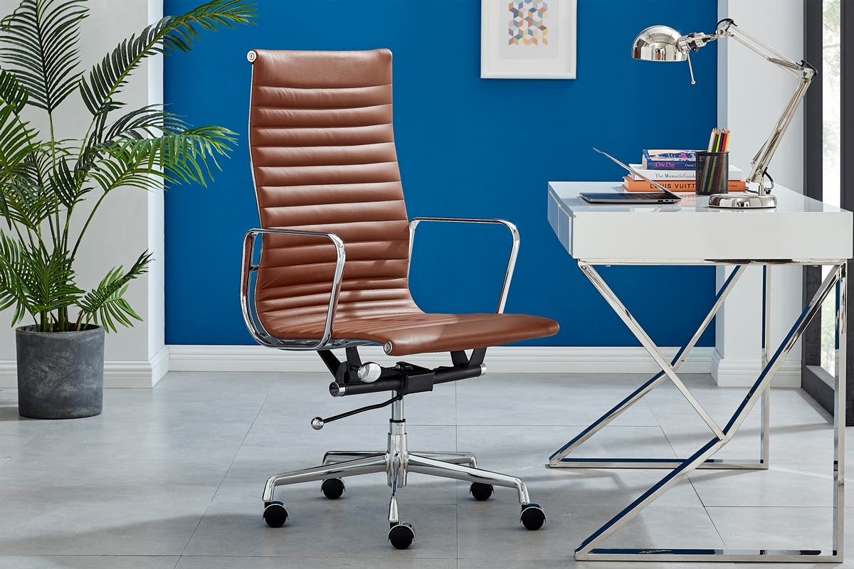 Add a designer classic to your office at home or work with the Matt Blatt Replica Eames Group Standard Aluminium High Back Office Chair (Tan Leather) that offers superior comfort and a powerful attitude wherever it goes.
