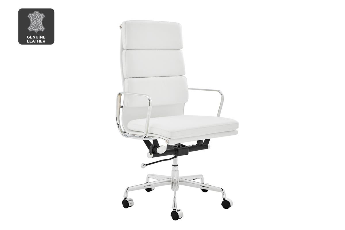 NNEKGE Replica Eames Group StandardPadded High Back Office Chair (White Leather)